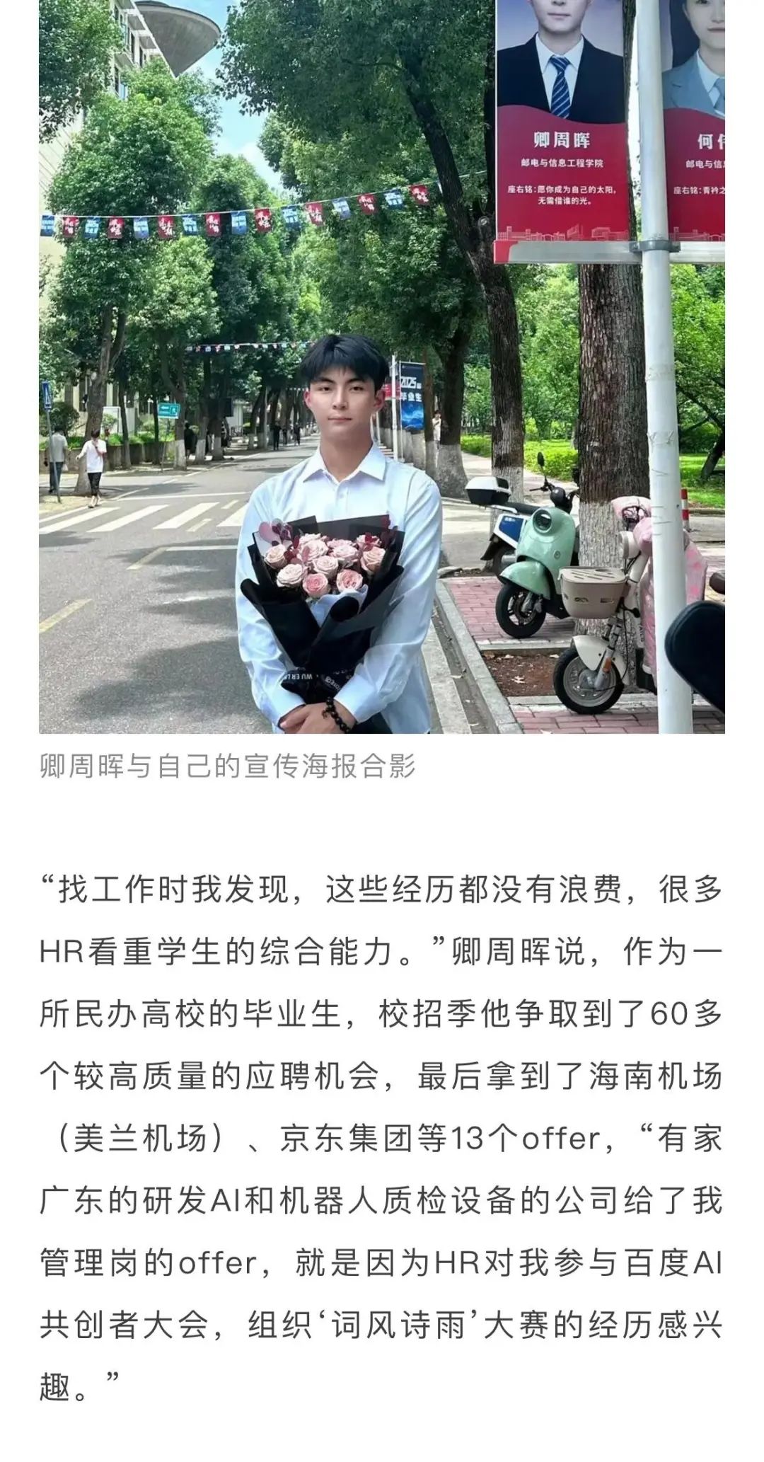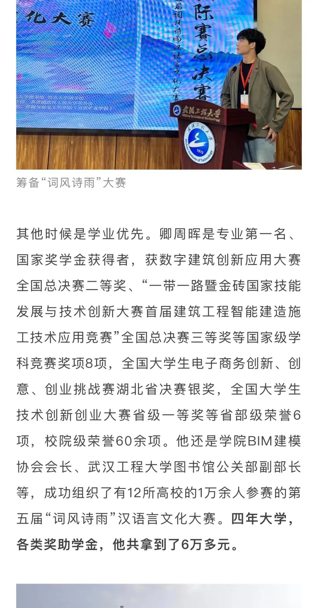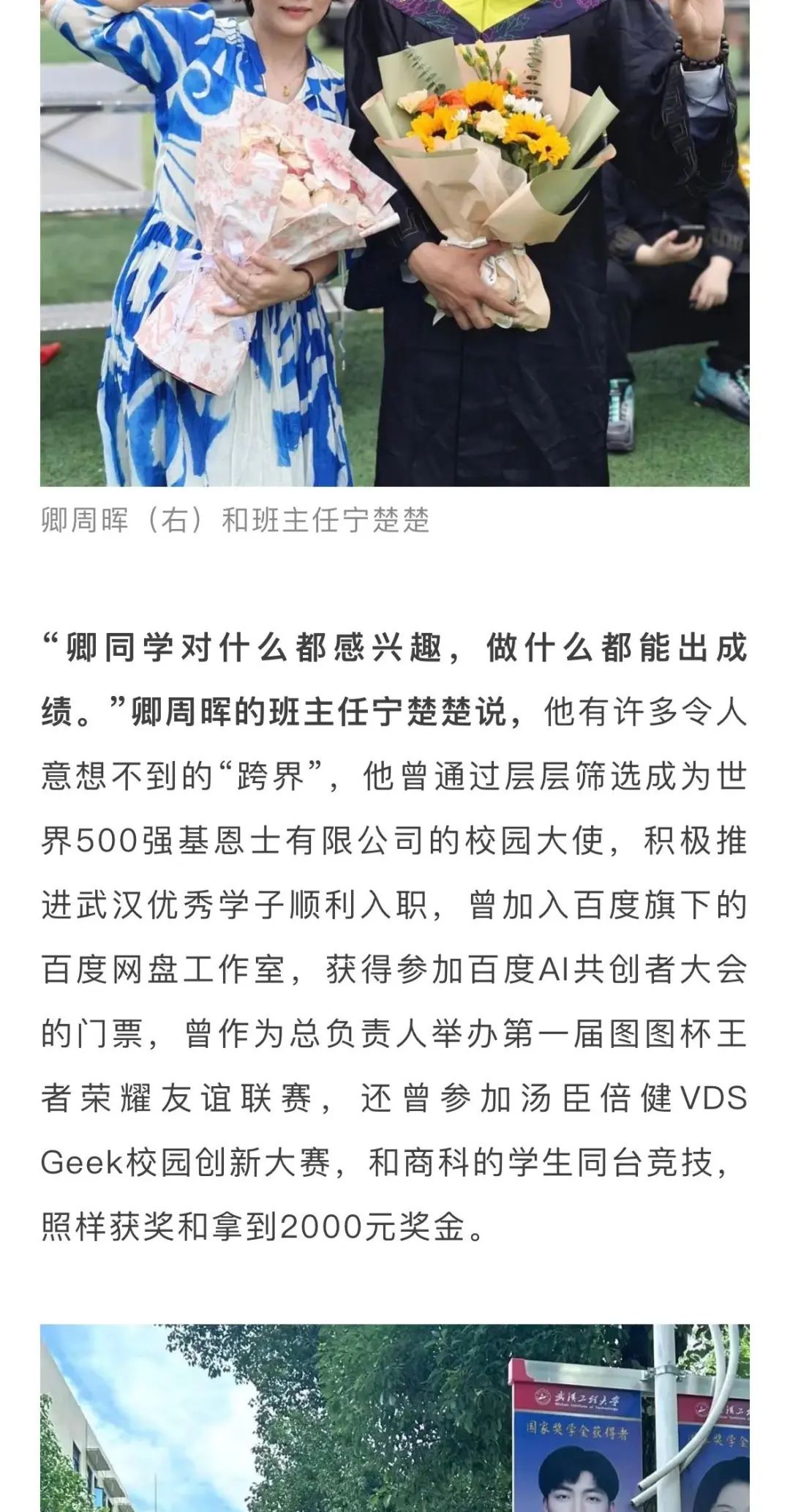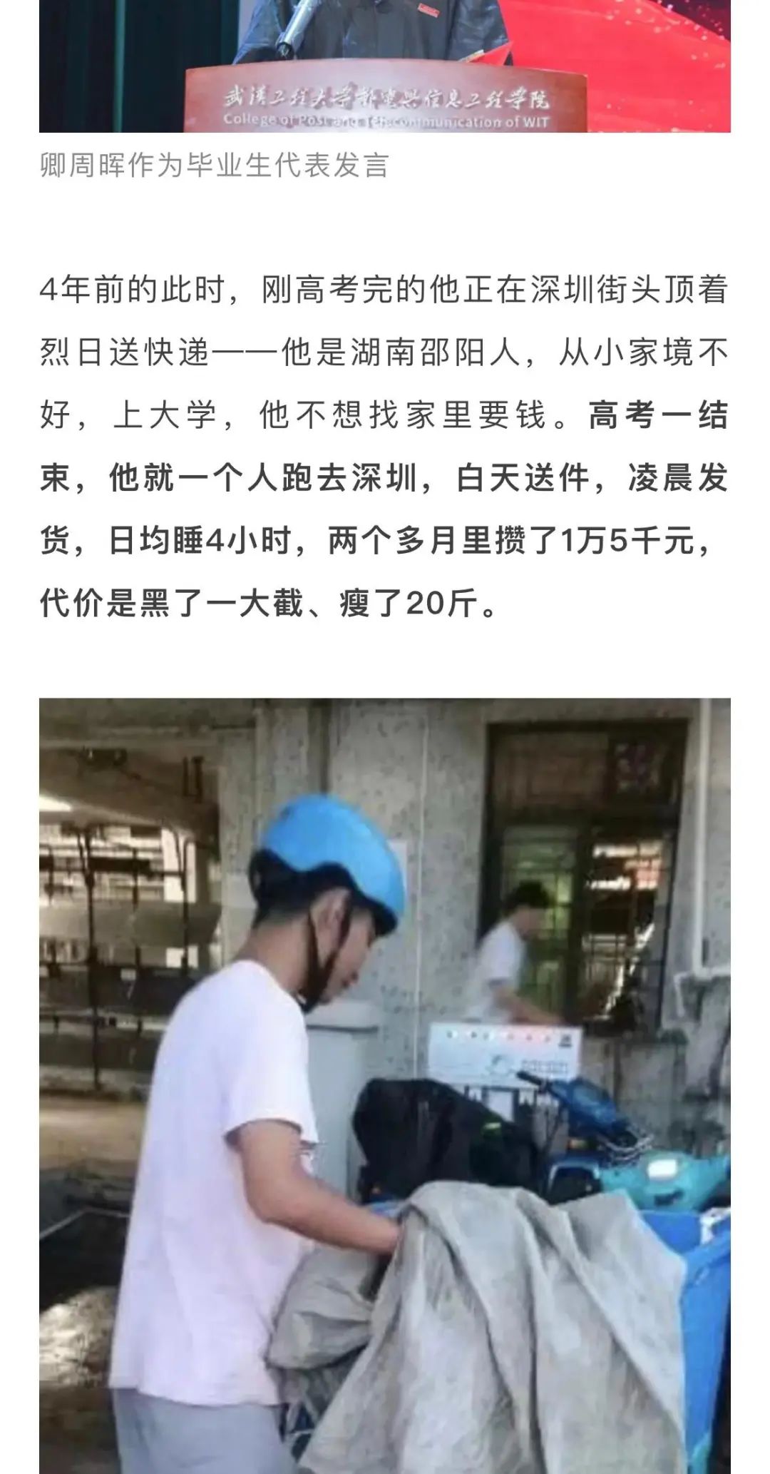 极目新闻、红网、邵阳发布等多家微信公众号媒体报道了我院卿周晖同学高考后送快递挣学费、自律自强终获迪拜高薪工作的励志事迹,展现了他坚韧拼搏与全面发展的青春力量,为广大学子树立了榜样!
