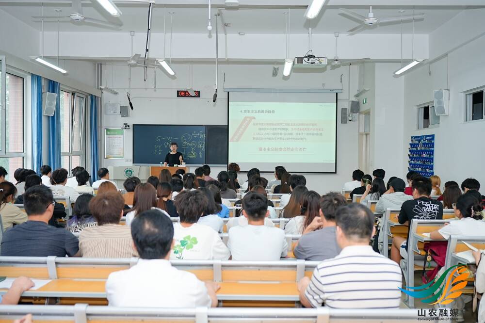课堂上,蔡威熙结合具体案例和丰富的图片、视频资料,深入浅出讲解了资本主义经济制度的本质,阐释了社会化大生产和商品经济运动的一般规律,坚定了学生们对社会主义经济制度的自信。徐剑波认真听取授课教师讲解,不时记录,并仔细观察着同学们的听课情况。