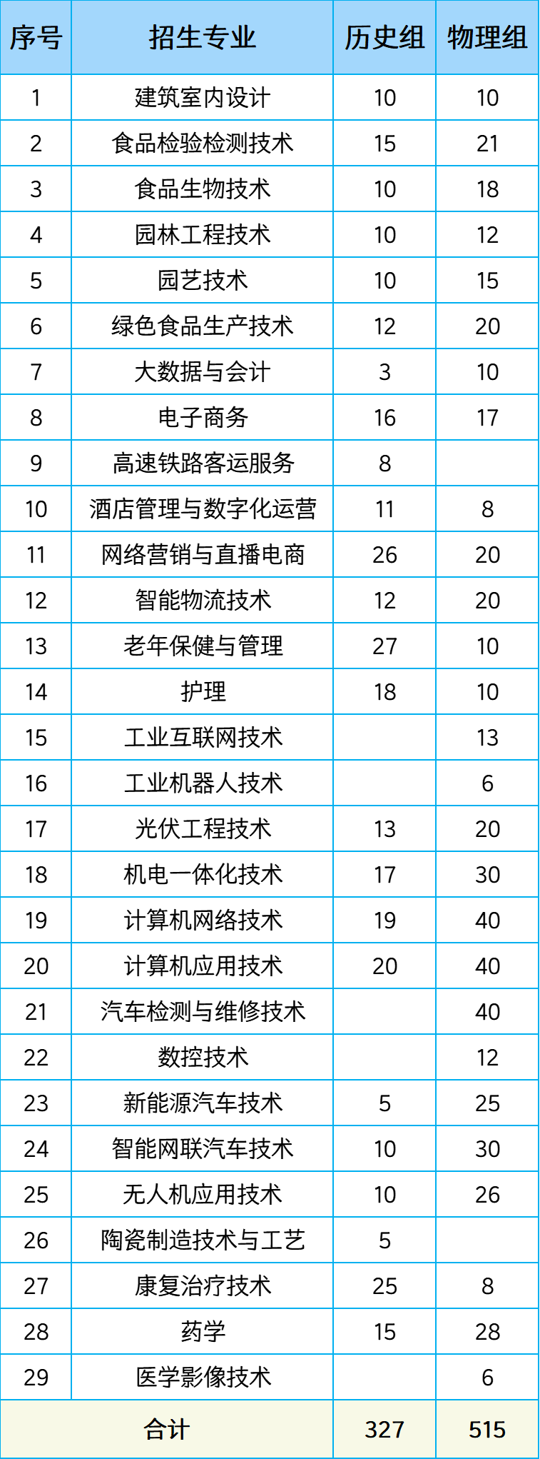 学校现有占地面积1264亩,校舍总面积49.5万㎡;设有城乡建设学院(乡村振兴学院)、信息与智能制造学院(军士学院)、经济与管理学院、康养护理学院、医学院、学前教育学院、公共基础教育学院、马克思主义学院8个教学单位;现有教职工751人,其中专任教师667人,正高级职称40人,副高级职称162人,高职“双师型”教师319人。