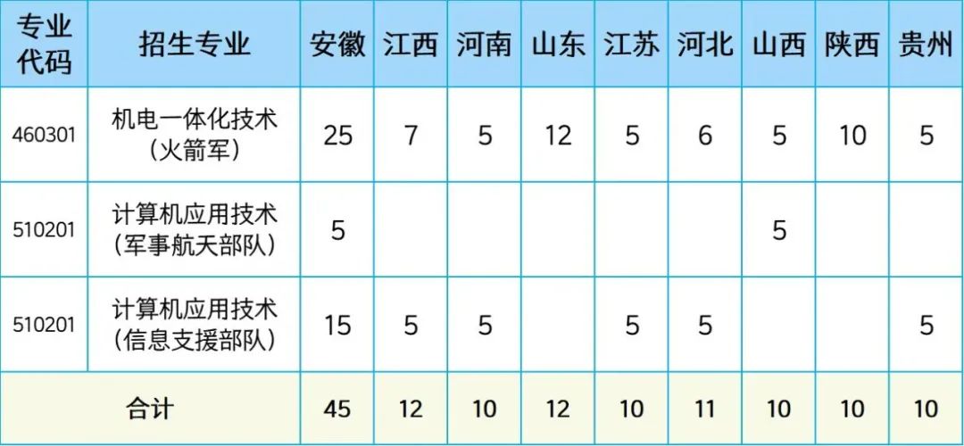 ·安徽省唯一一所火箭军、军事航天部队和信息支援部队定向培养军士院校