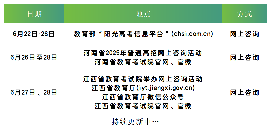 在线下咨询会基础上,我校将同步参与各省教育考试院主办的网上咨询活动,为考生提供全方位志愿填报服务。