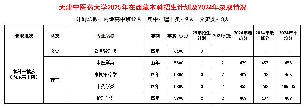2025年在西藏本科招生计划及2024年录取情况