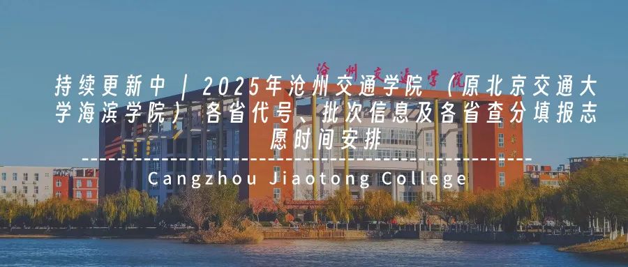 沧州交通学院(原北京交通大学海滨学院)在各省的代号、批次信息以及各省查分与填报志愿时间安排持续更新中,一起来看看吧。