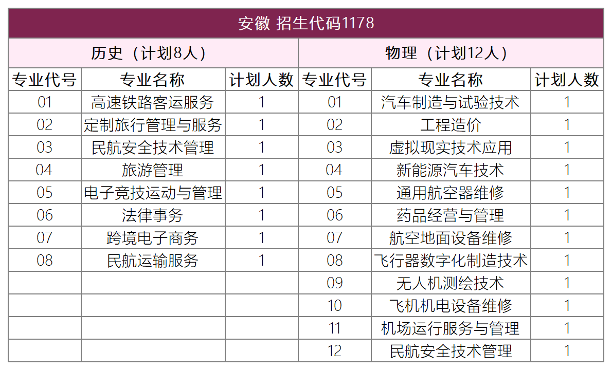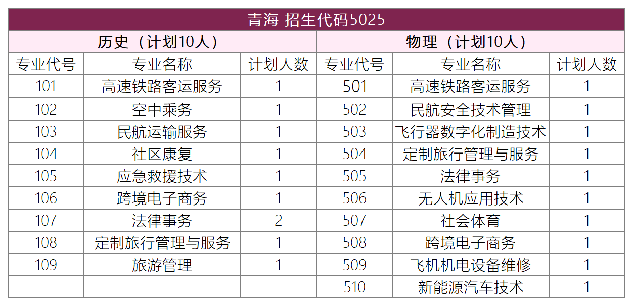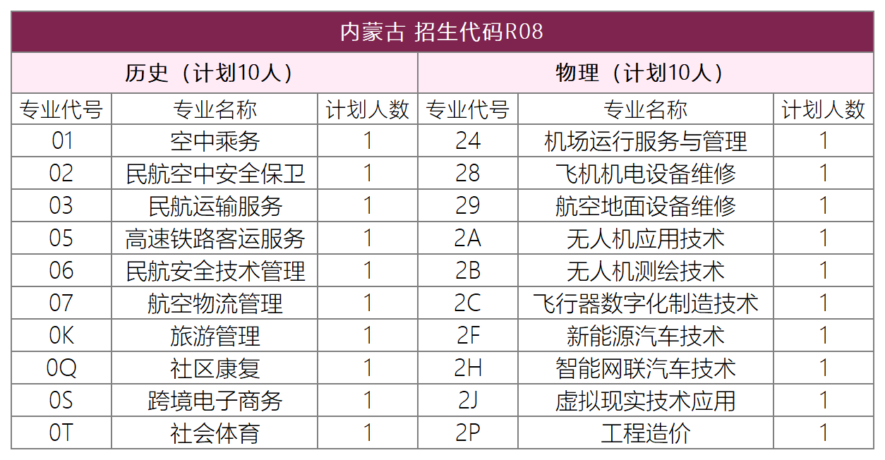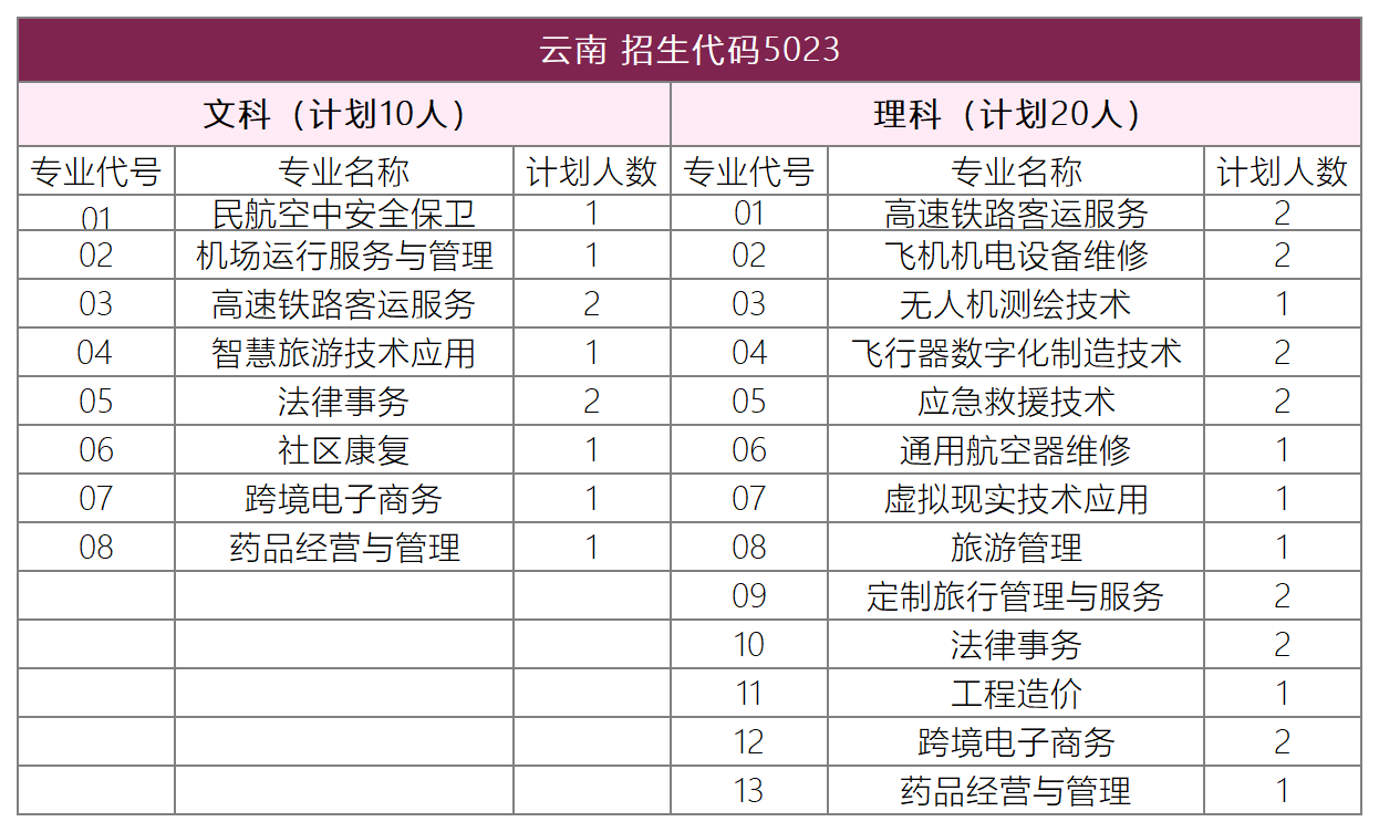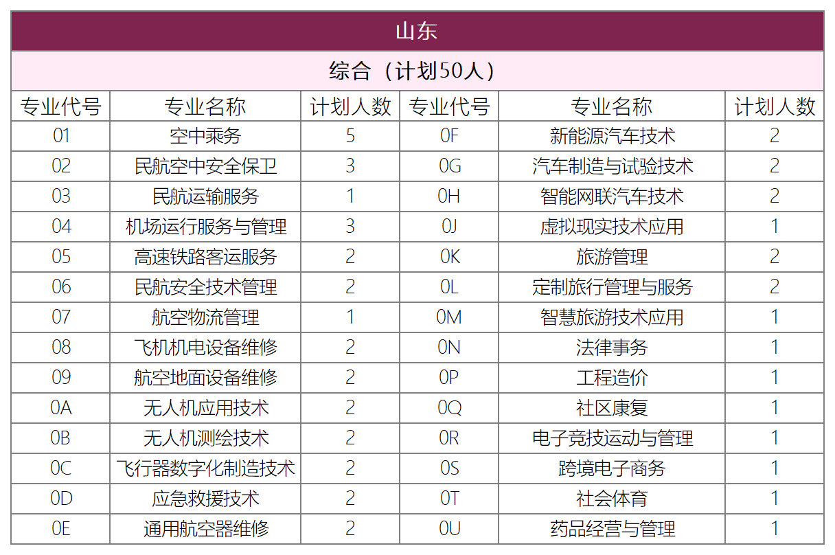 注:最终招生专业名称及招生计划数、专业代码以各省教育考试院统一公布为准。