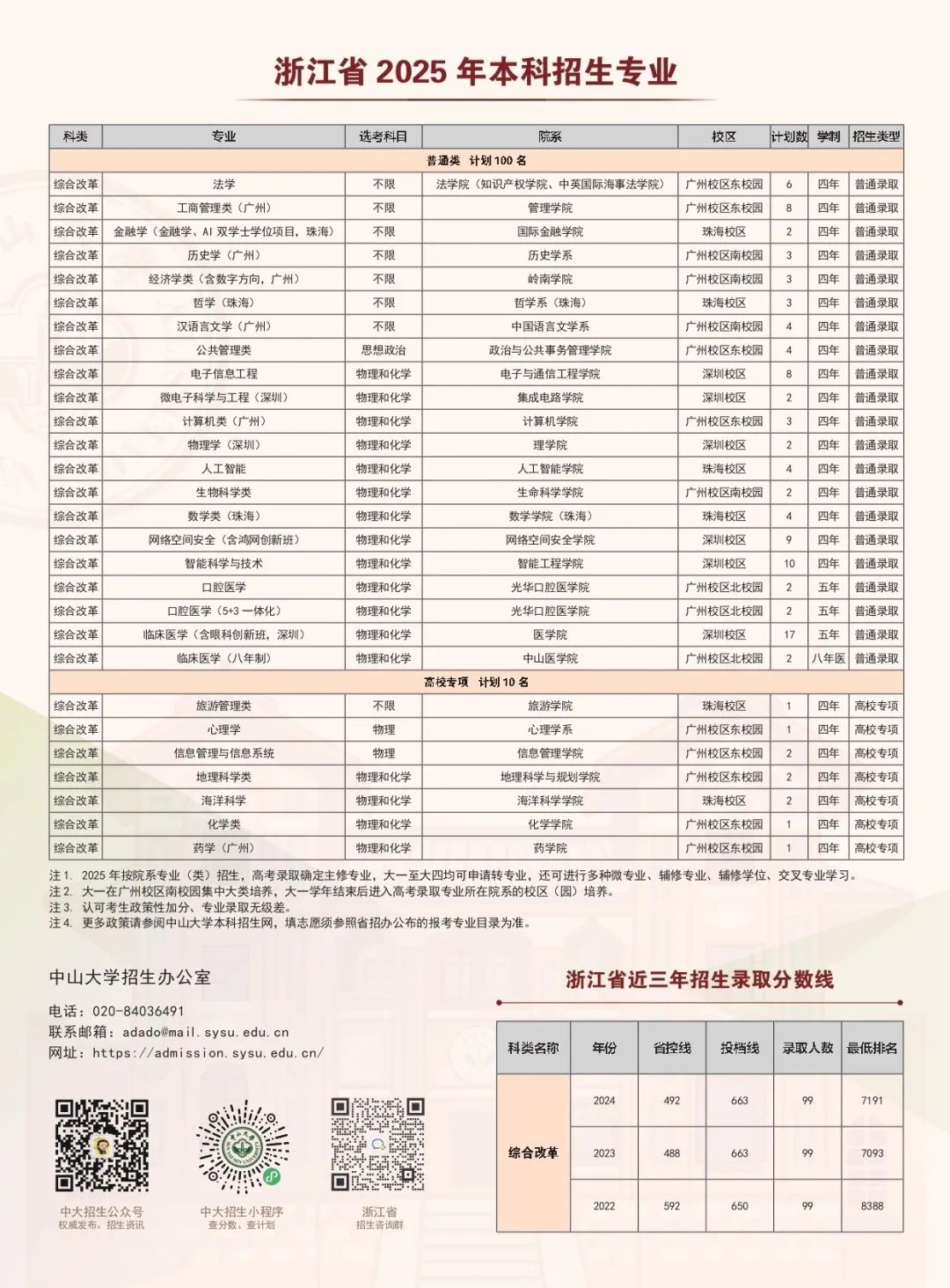 中山大学2025年浙江本科招生计划
