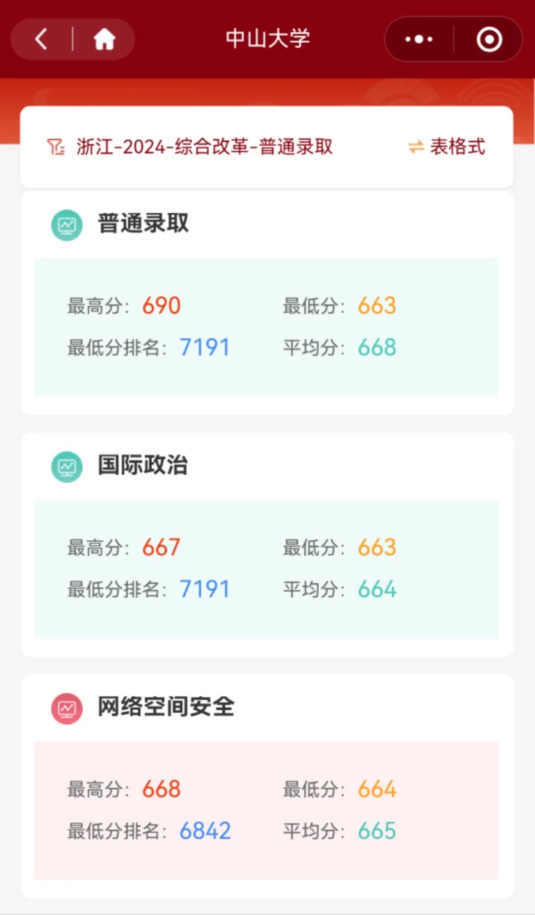 您还可以点击扫描下方二维码,进入中大招生小程序,在【历年分数】版块中,你可以了解各地2022~2024年的分数线及最低位次。知己知彼方能百战百胜,提前为报考做好规划和准备!打开【院系专业】栏目,了解专业详情!