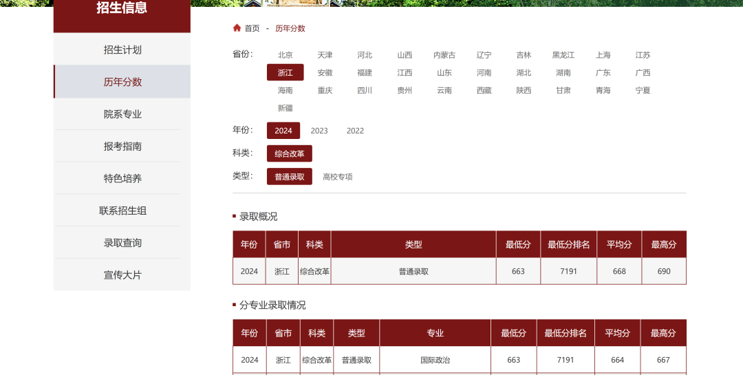 浙江本科招生录取分数线