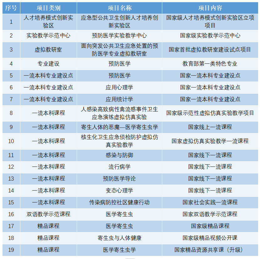 ●ESl全球前1%学科(药理学与毒理学、微生物学、精神医学/心理学、环境与生态学),国家一流本科专业建设点预防医学、应用心理学和生物统计学