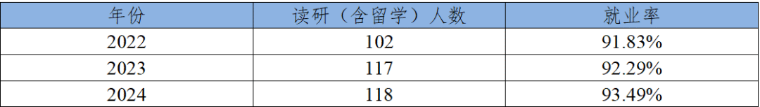 近三年,学院本科毕业生就业率逐年攀升,分别为91.83%、92.29%、93.49%。其中,本科毕业生就业去向以升学为主,升学率逐年攀升,分别为39.38%、46.25%(位居学校第一)、46.09%,其中多位学生升学至北京大学、中国科学院大学、北京师范大学、华东师范大学、中山大学、厦门大学、兰州大学等985、“双一流”高校。另有不少学生申请至英国曼彻斯特大学、新加坡国立大学等国(境)外学校继续深造。