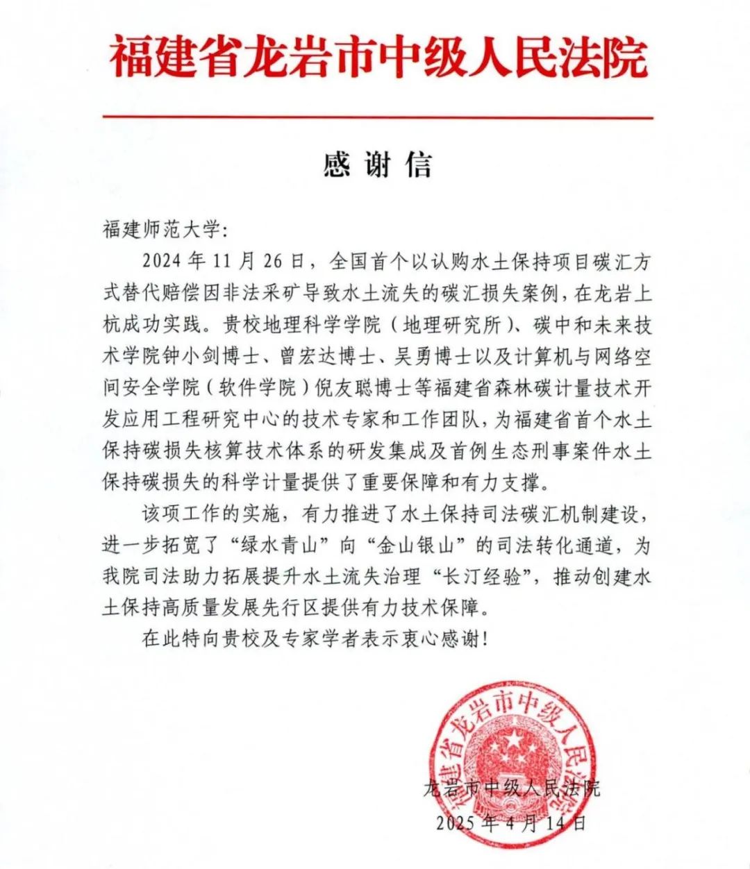 在森林“碳计量”基础与应用研究取得系列成果,包括揭示了森林碳汇形成过程及其内在驱动机理,阐明了森林碳汇动态变化对全球变化的响应,开展了碳汇方法学及碳计量实践,服务于碳交易;参与制定了《林业碳汇项目审定和核证指南》国家标准;2023年12月成功支撑全国首单水土保持项目碳汇交易,该项工作获水利部来信致谢并表扬。2024年为全国首个以认购水土保持项目碳汇方式替代赔偿因非法采矿导致水土流失的碳汇损失案例提供技术支持,得到司法部门的肯定。