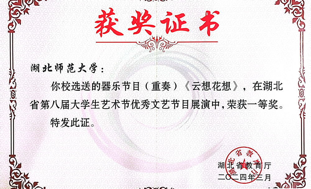 人才培养:坚持以人为本、因材施教,大力推进实践教学,注重培养学生的创新精神和实践能力,人才培养质量不断提高。学生在历届全国普通高等学校音乐教育本科专业学生基本功比赛、全国大学生艺术节艺术展演、全国高校“金话筒”主持人大赛、湖北舞蹈“金凤奖”等大型比赛中,荣获多项国家级、省级奖励。