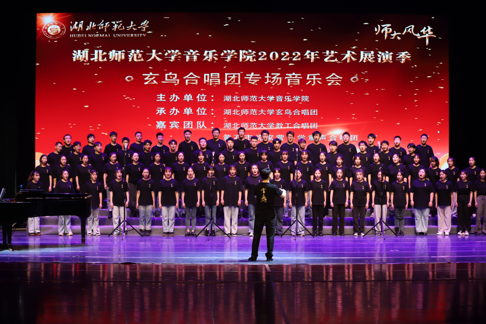 湖北师范大学玄鸟合唱团:成立于2014年9月,下设混声合唱团、女声合唱团、男声合唱团等,演绎中外不同时期、不同风格的优秀作品百余首,多次参加校内外大型演出,荣获湖北省第四、五、六届大学生艺术节合唱类一等奖。2018年参与由外交部、湖北省人民政府主办的湖北全球推介会主题曲《这里是湖北》录制。2020年5月参与中央音乐学院组织的《我们》云合唱演出,12月与郎朗同台参加“小叶子”阳光自强公益音乐会。举办玄鸟专场音乐会多场,2022年为北爱尔兰孔子学院10周年庆典担任演出嘉宾,广受好评。2023年与北爱兰奥斯特大学联合参演湖北师范大学50周年校庆活动。