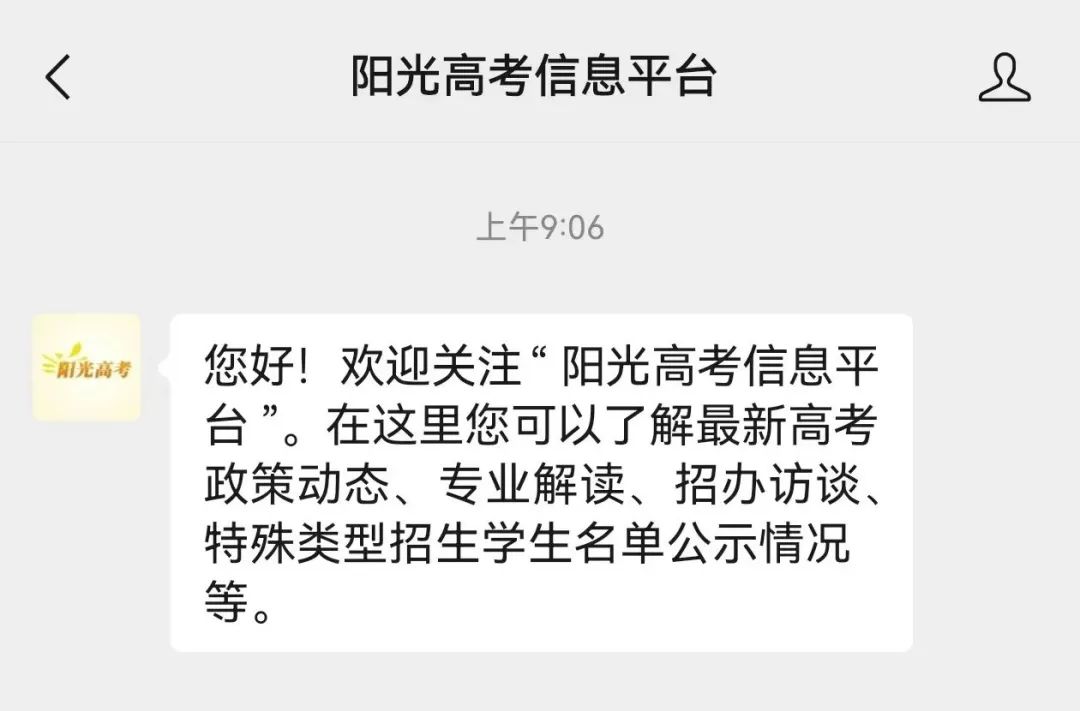 在微信搜索“阳光高考信息平台”或直接点击公众号名片,进行关注。