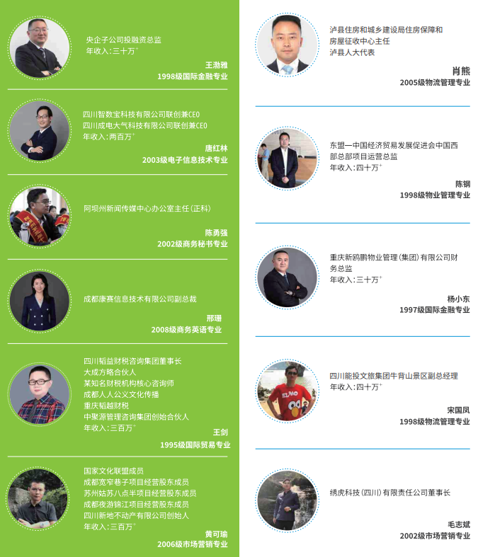 学校紧密围绕成渝地区双城经济圈和成德眉资同城化的发展战略,构建有健康专业集群、体育及旅游专业集群、数字媒体与文化创意专业集群、财经商贸专业集群和城镇建设专业集群,现有护理、康复治疗技术、药学、休闲体育、市场营销等48个招生专业,主要涵盖电子与信息、医药卫生、旅游、财经商贸等13个专业大类。