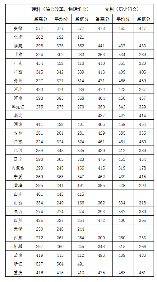 2021年各省分数线汇总表