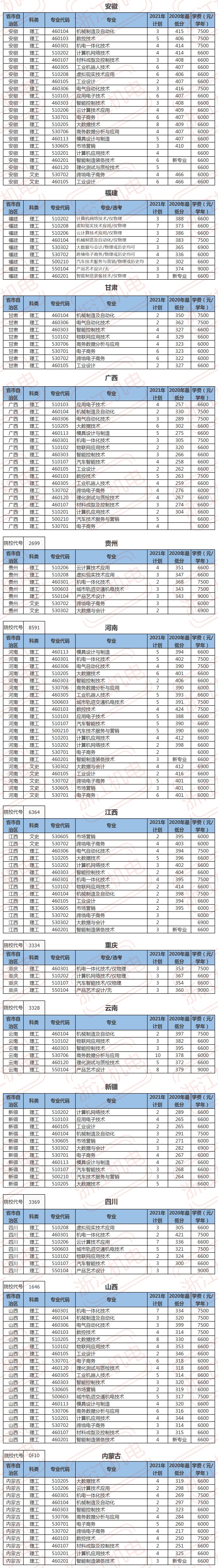 2021年各省市自治区招生计划