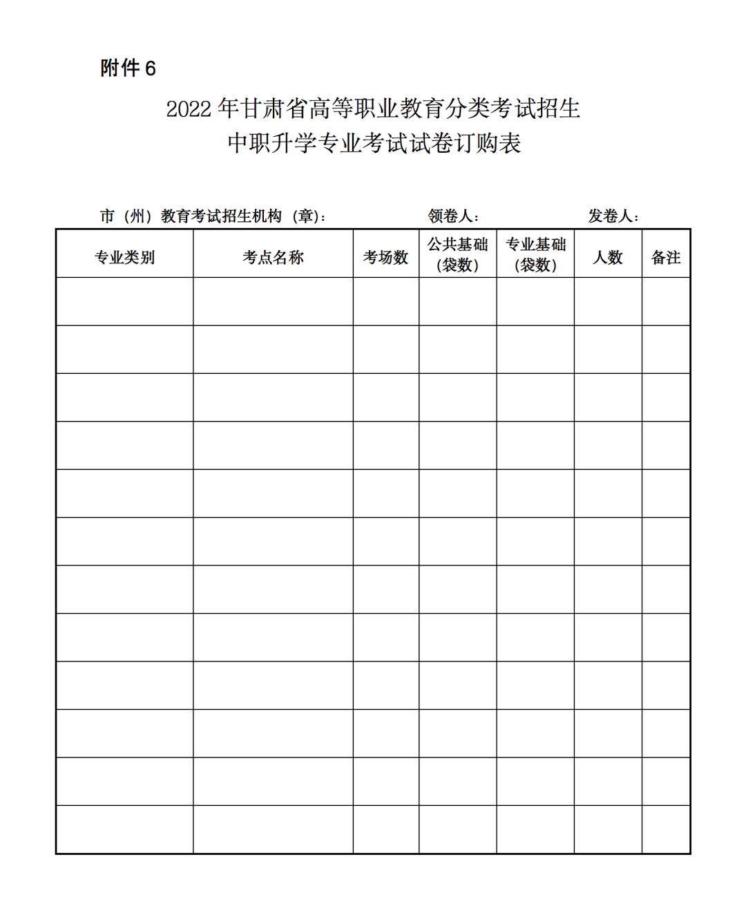 6.2022年甘肃省高等职业教育分类考试招生中职考试试卷订购表