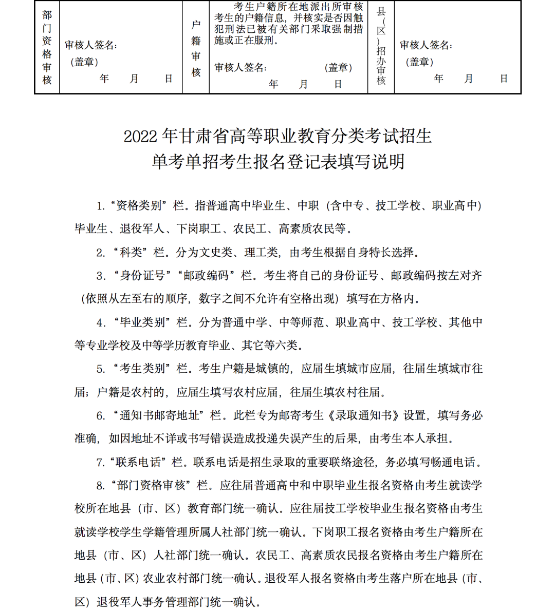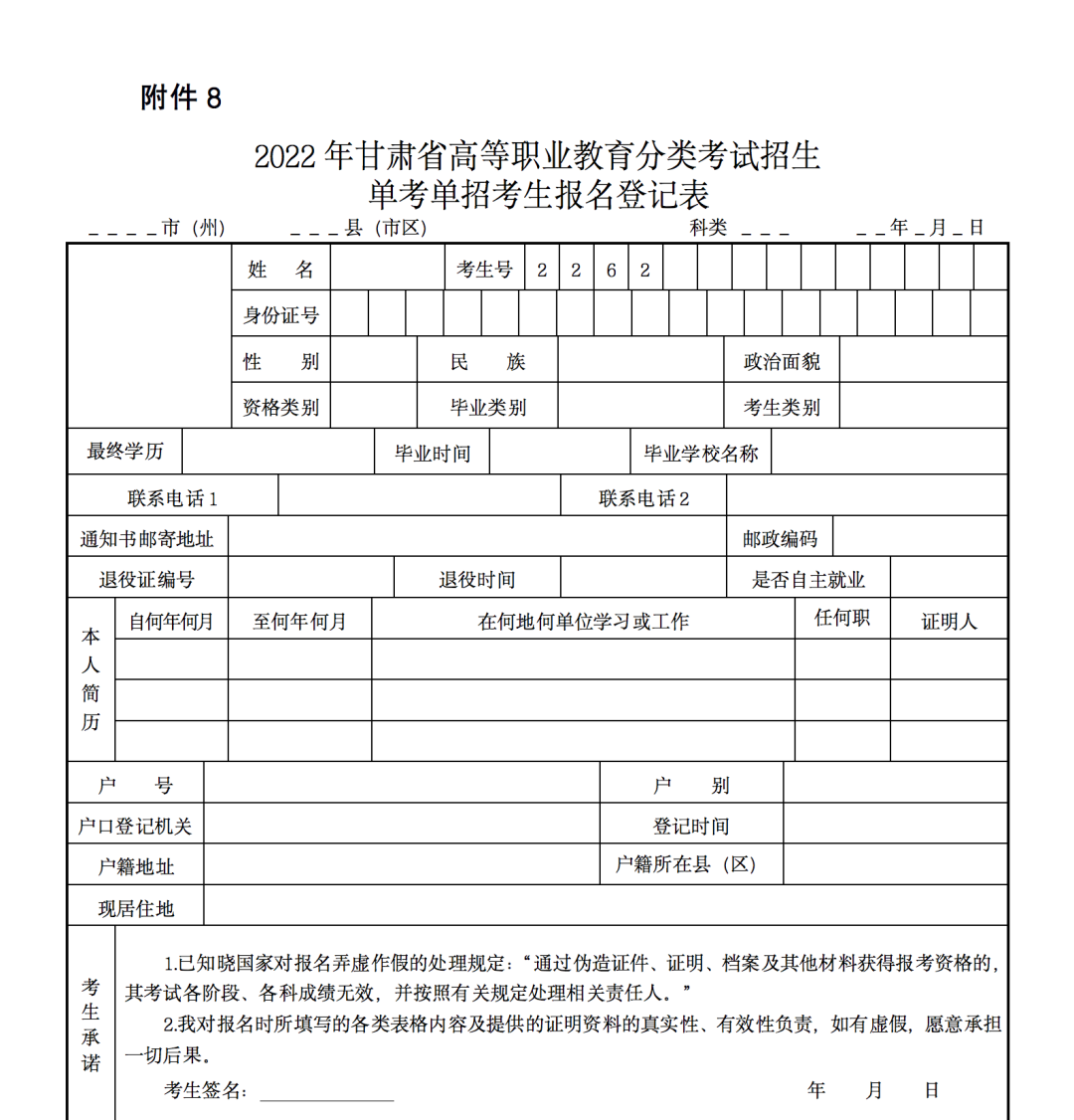8.2022年甘肃省高等职业教育分类考试招生特殊群体考生报名登记表