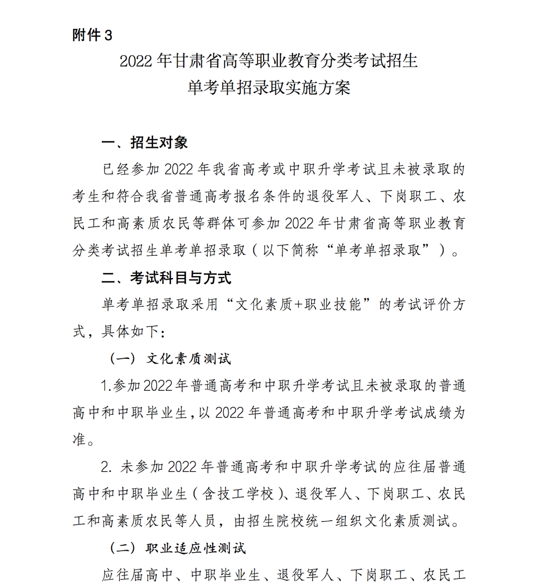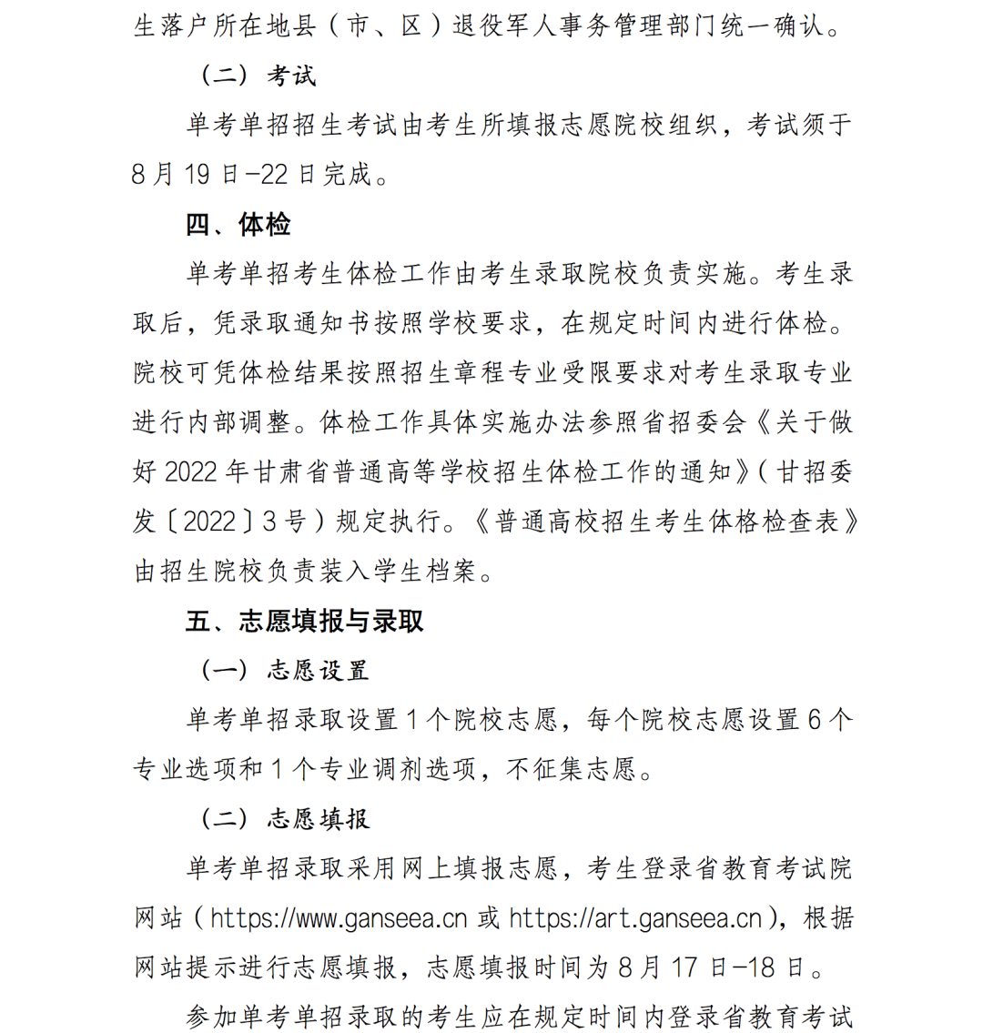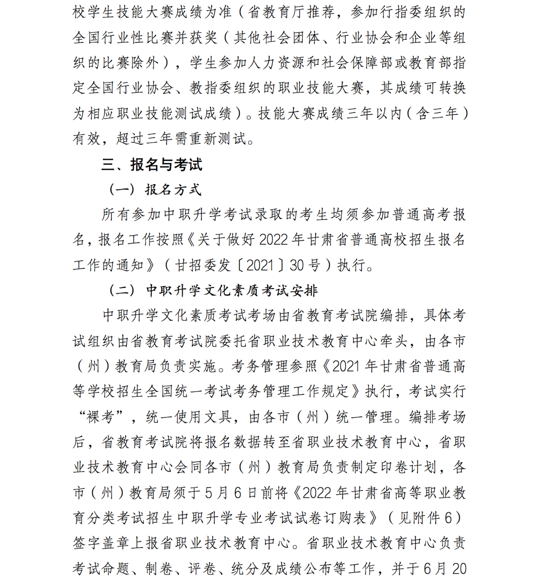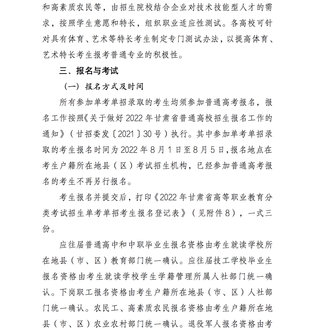 3.2022年甘肃省高等职业教育分类考试招生单考单招实施方案