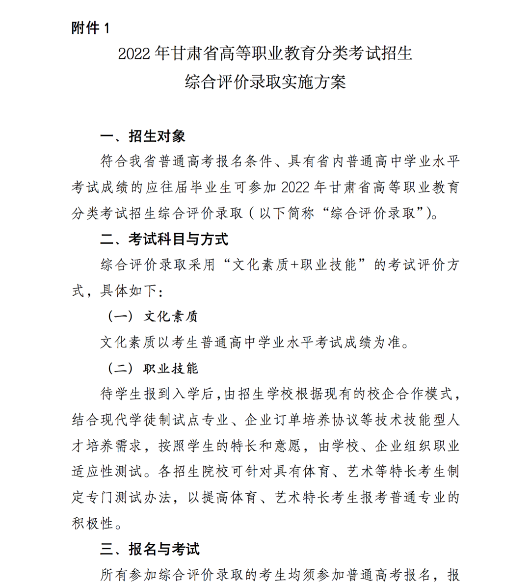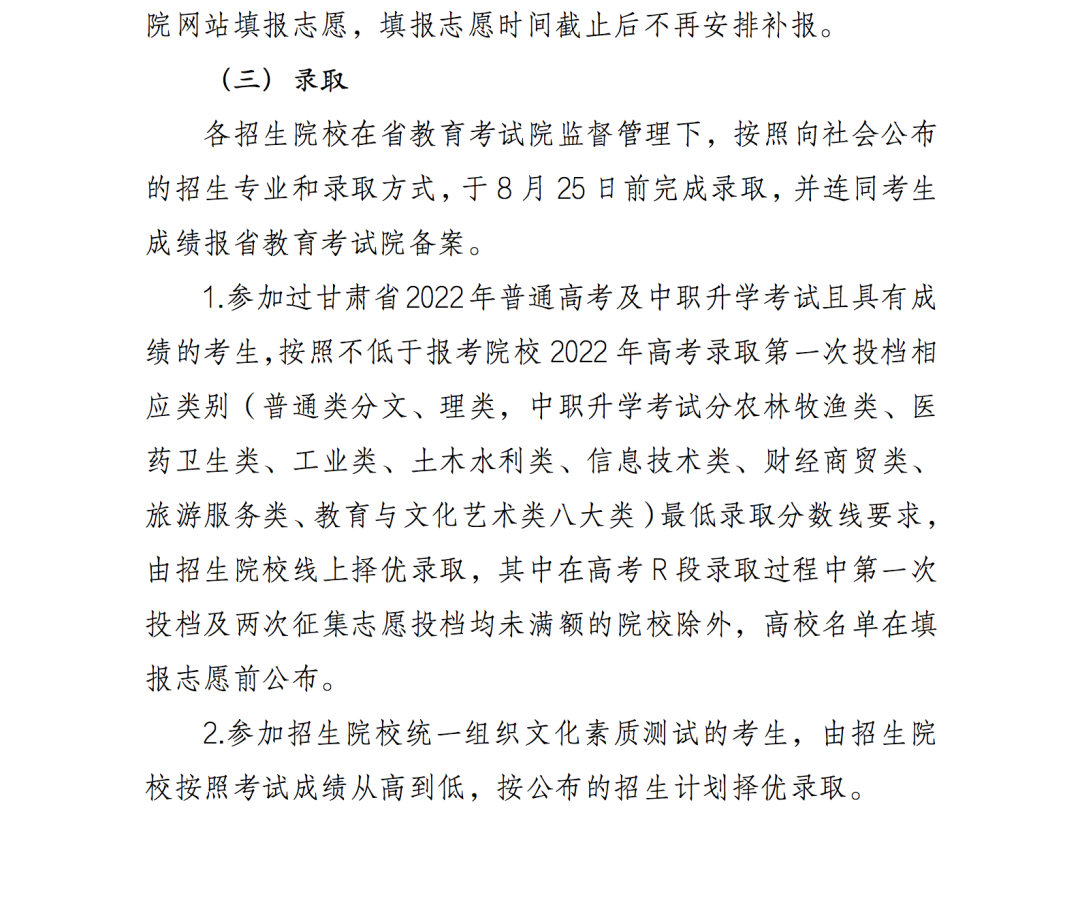 1.2022年甘肃省高等职业教育分类考试招生综合评价录取实施方案