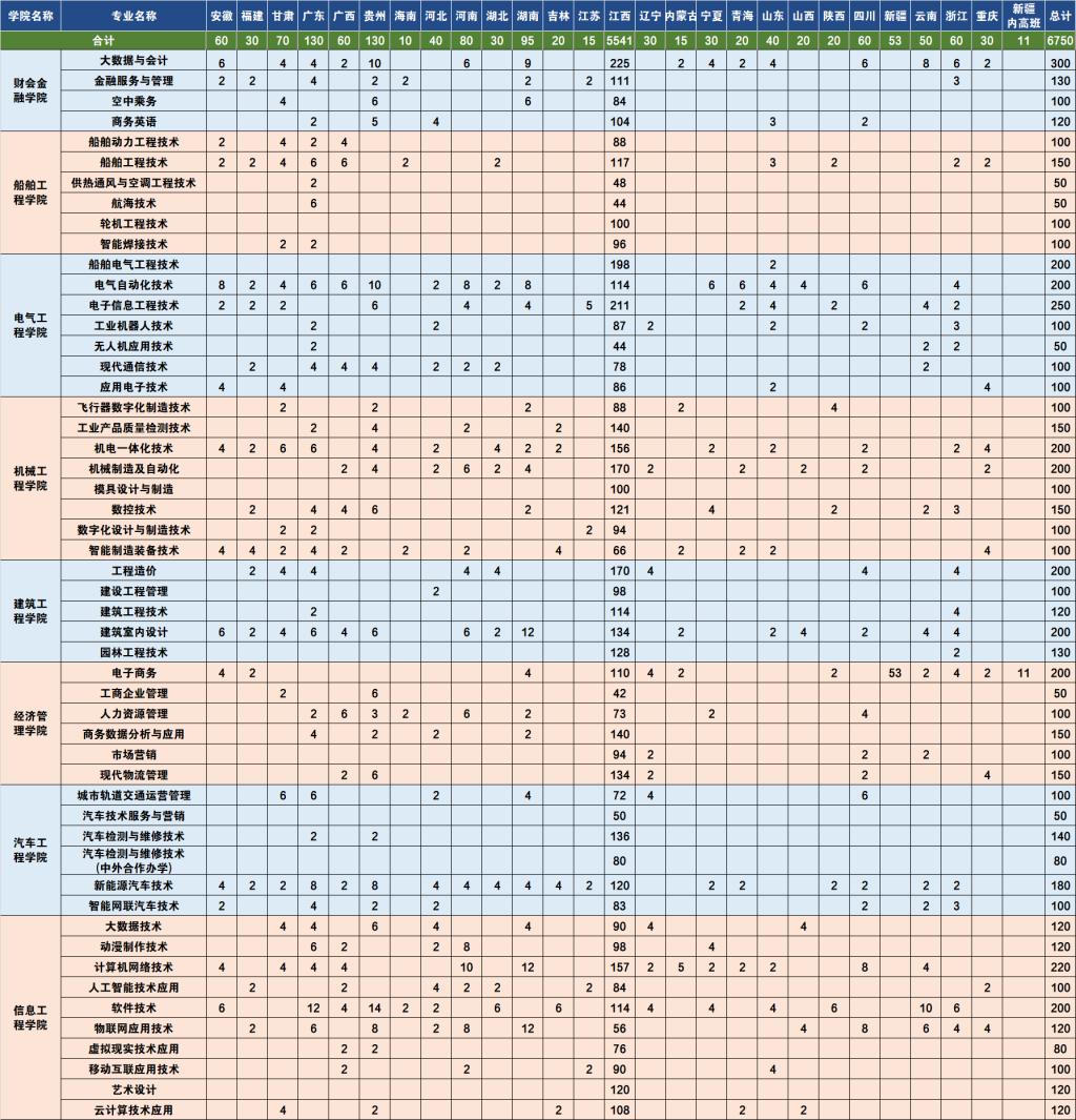 注:江西省专科招生计划5541名,其中