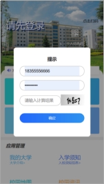 3.进入后点击首页左上角“请点击登录”,弹出登录信息提示框。输入招生信息中的手机号码进行登录,默认密码:Gslx@4321,输入图形验证码后,进入系统页面。