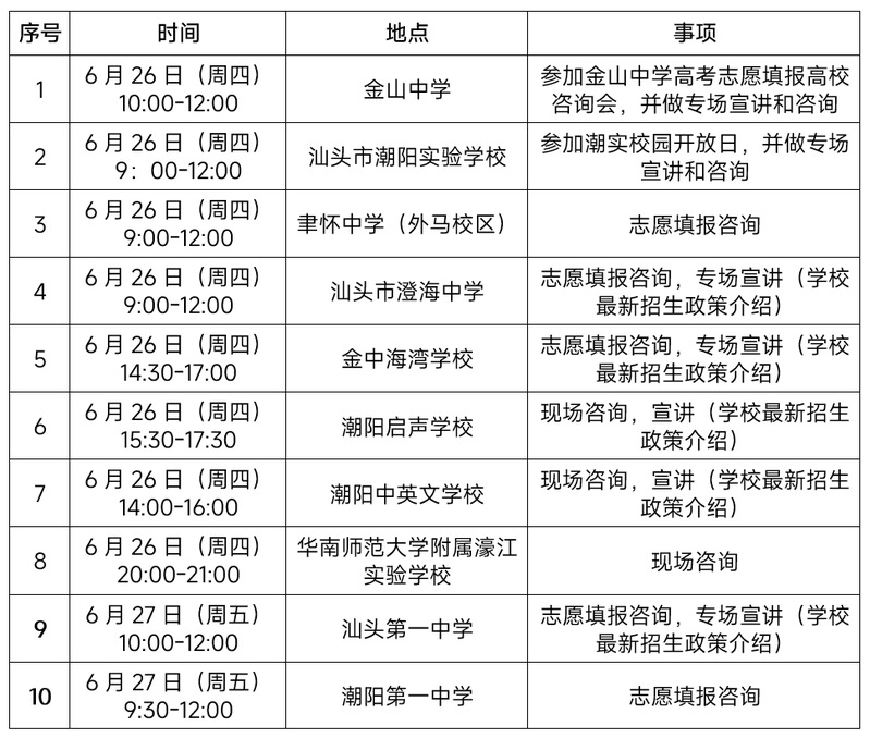 备注:具体中学的宣讲教室可咨询相关中学老师。