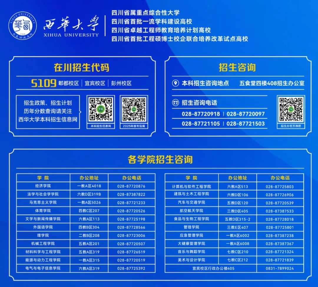 西华大学各学院招生咨询