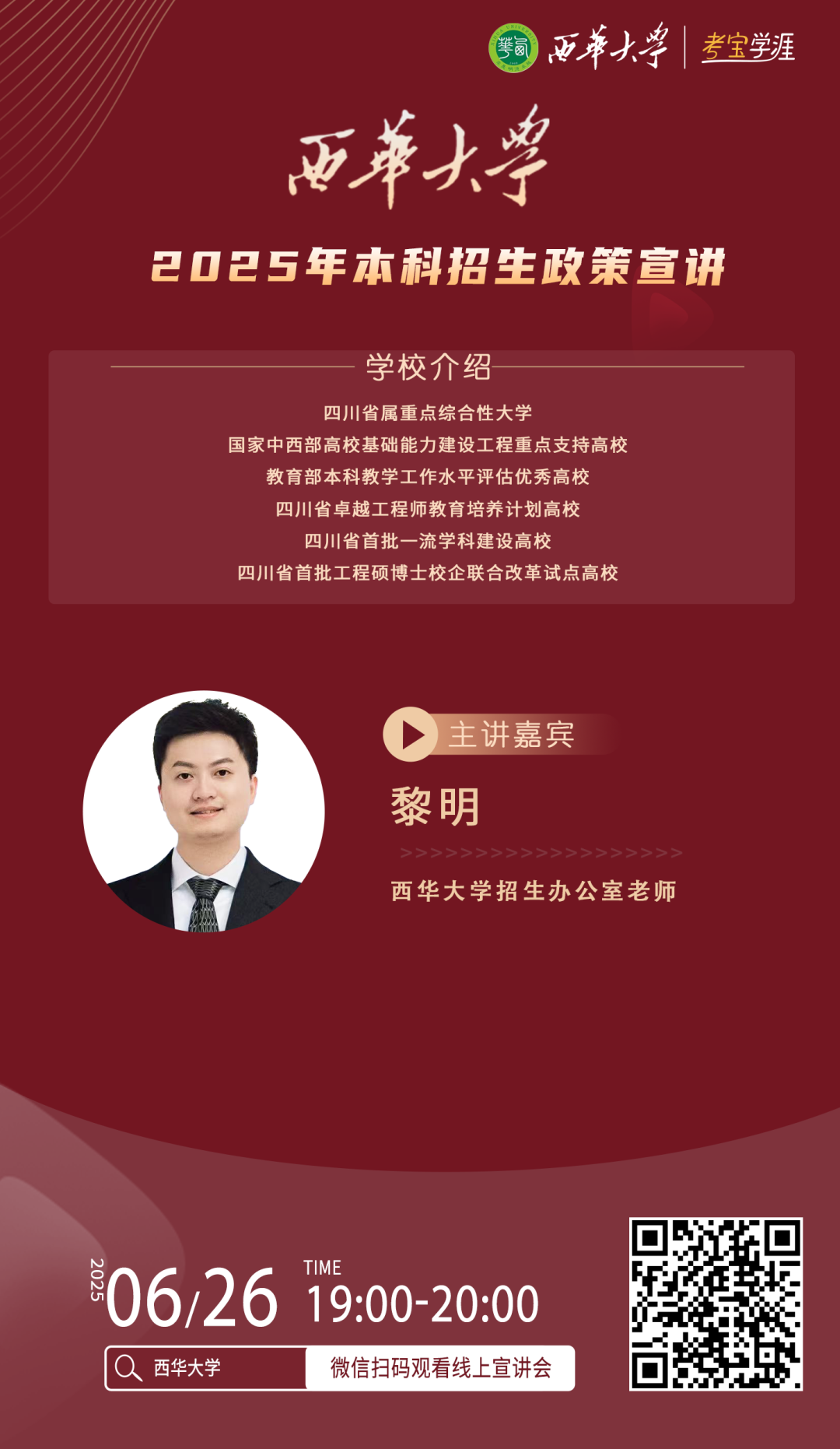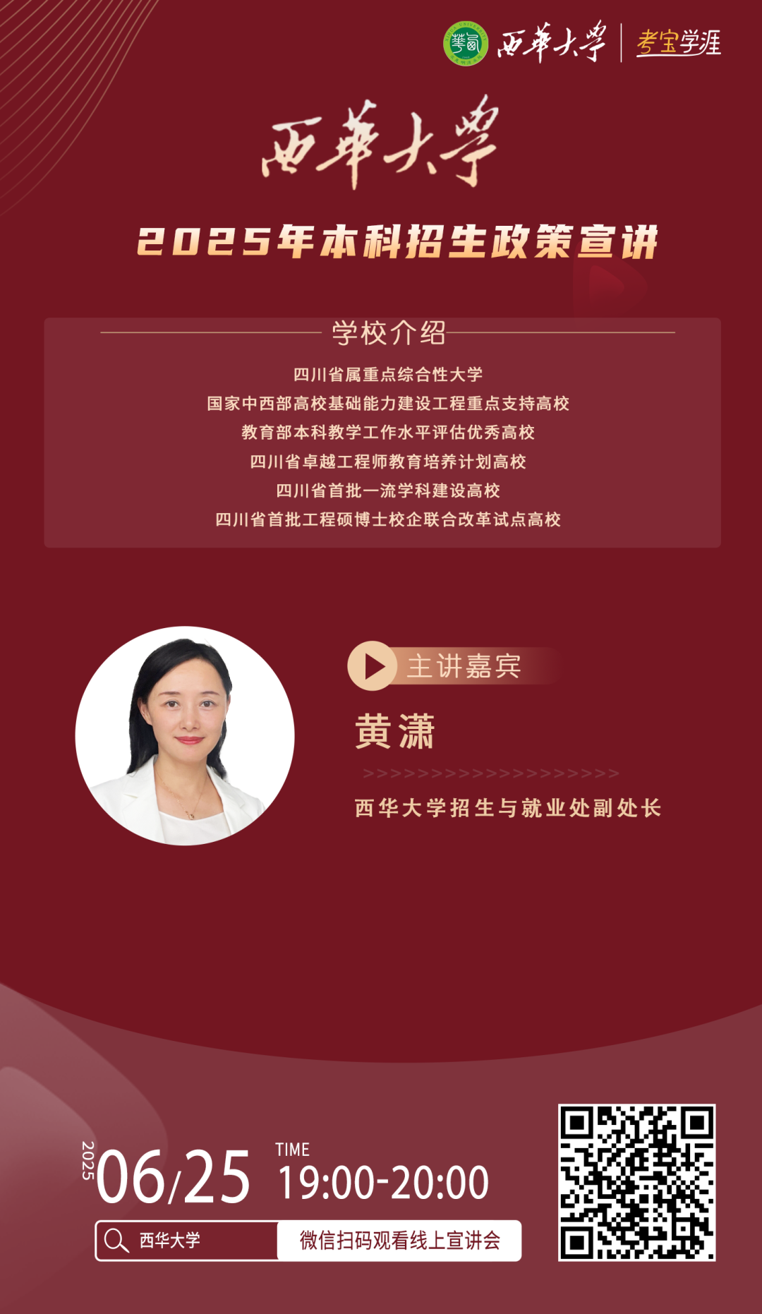 西华大学2025年本科招生直播为你详细解读西华本科招生政策你关心的,都在这里欢迎收看!你想了解的都在这里
