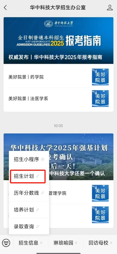 点击底部菜单栏「招生信息」-「招生计划」栏目
