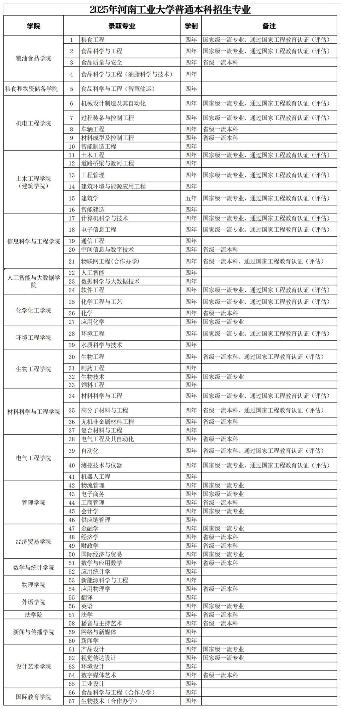 2025年河南工业大学普通本科招生专业