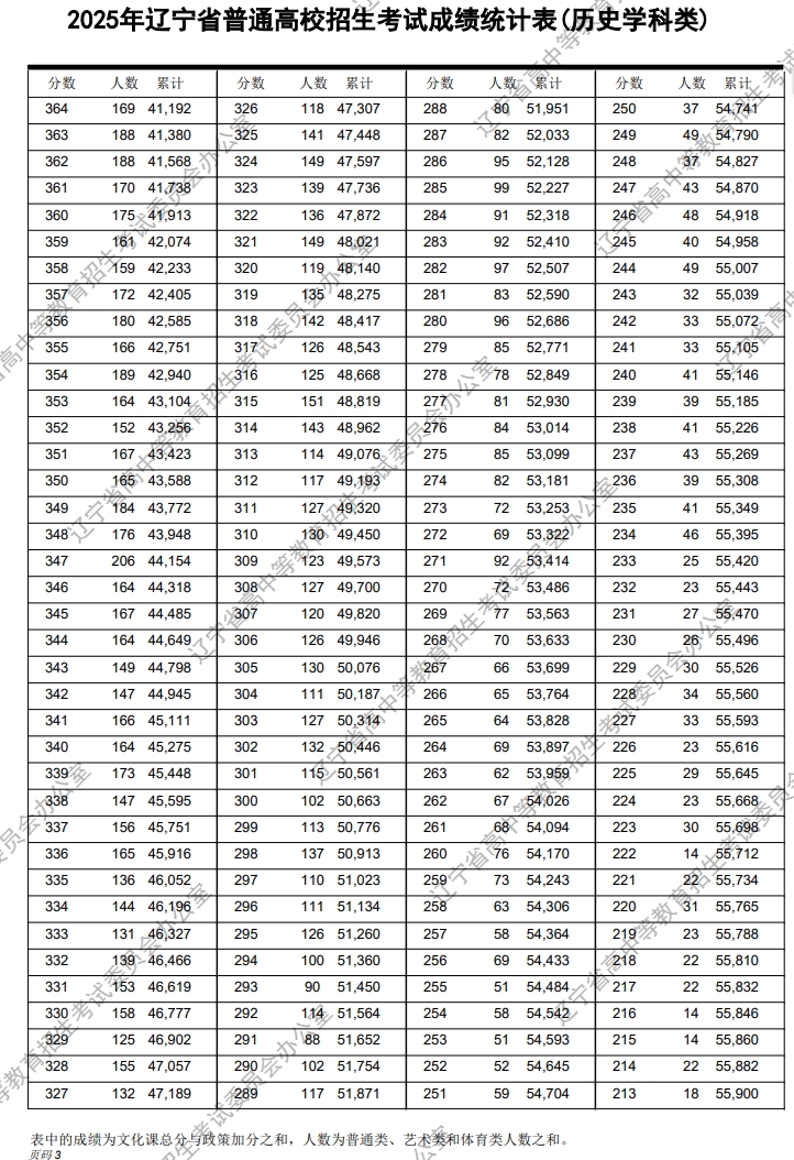 文章来源:辽宁招生考试之窗 2025年辽宁省普通高校招生考试成绩统计表