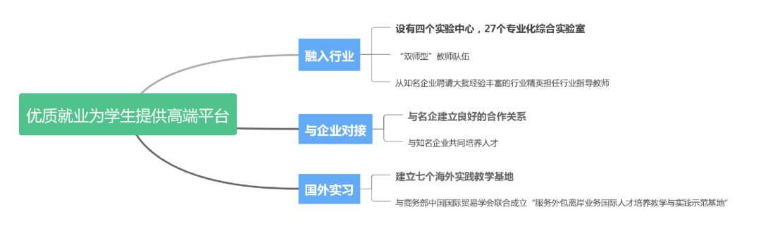 学校先后建立了一百多家符合专业学习需要的大学生实习、实践和就业基地。长期与中国农业银行、中国建设银行、中国工商银行、中国银行、浦发银行、杭州银行、北京注册会计师协会、北京期货商会、大华会计师事务所等重点就业单位建立了良好的合作关系,形成了“学习—实践—就业”良性发展模式。