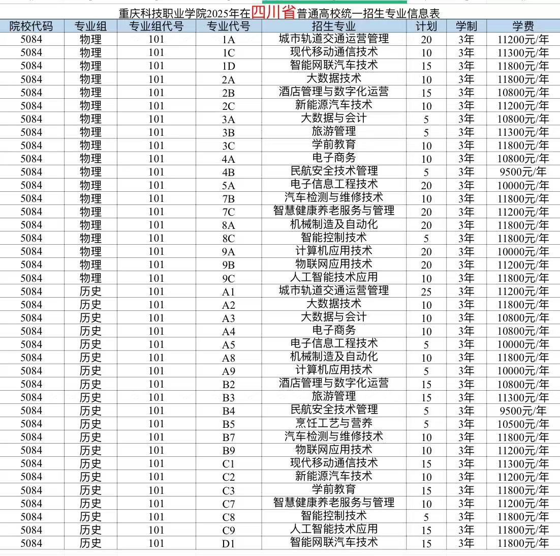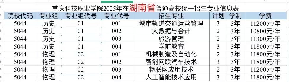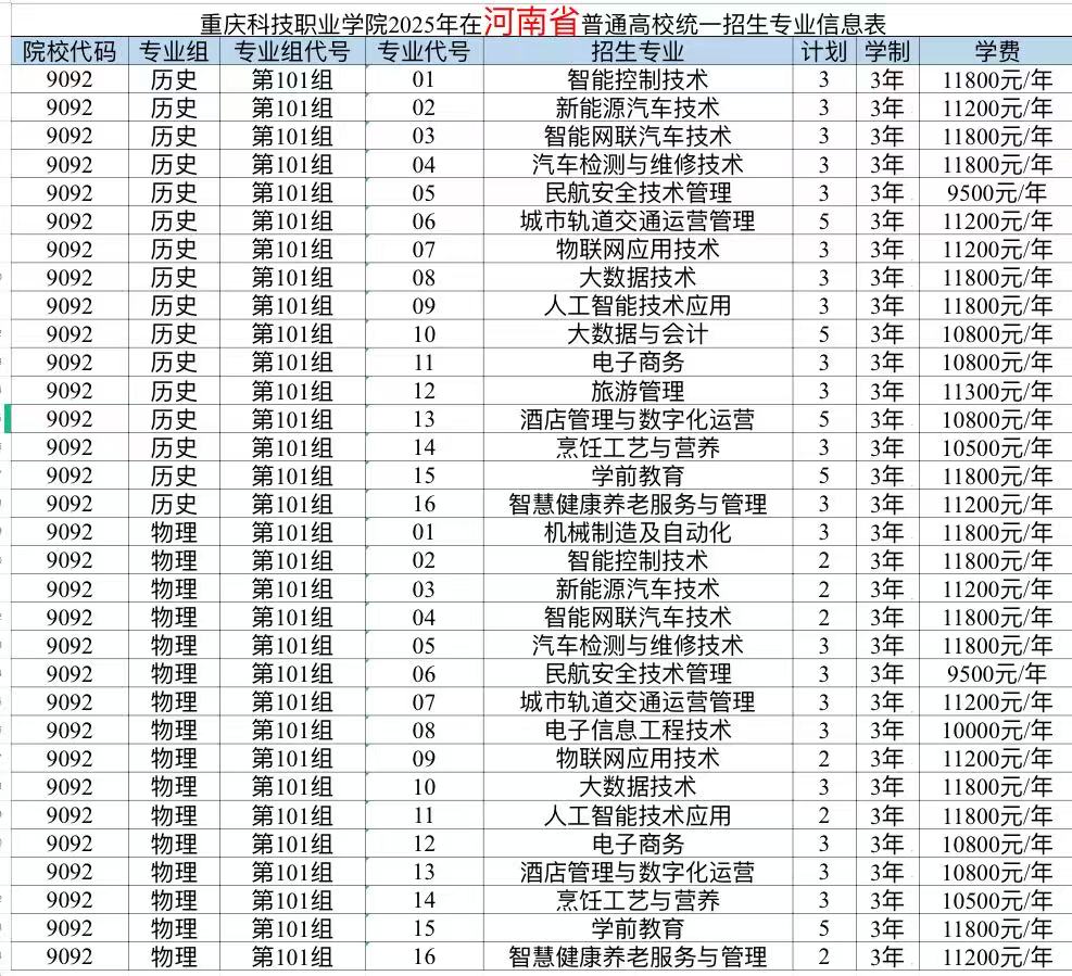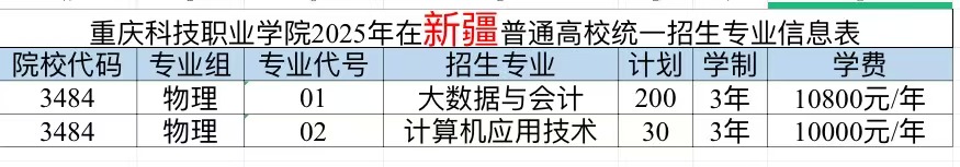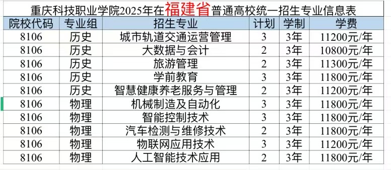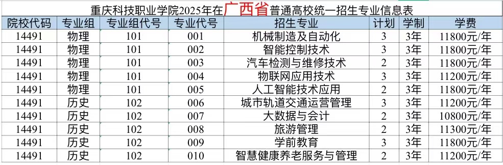 重庆科技职业学院2025年计划面向重庆、河北、江苏、浙江、安徽、福建、江西、山东、河南、湖北、湖南、广西、四川、贵州、云南、青海、新疆、广东、内蒙古、海南、黑龙江21个省市招生,考生填报志愿时,院校代号(码)、院校专业组及代号、专业代号请参照各省(自治区、直辖市)公布的为准。