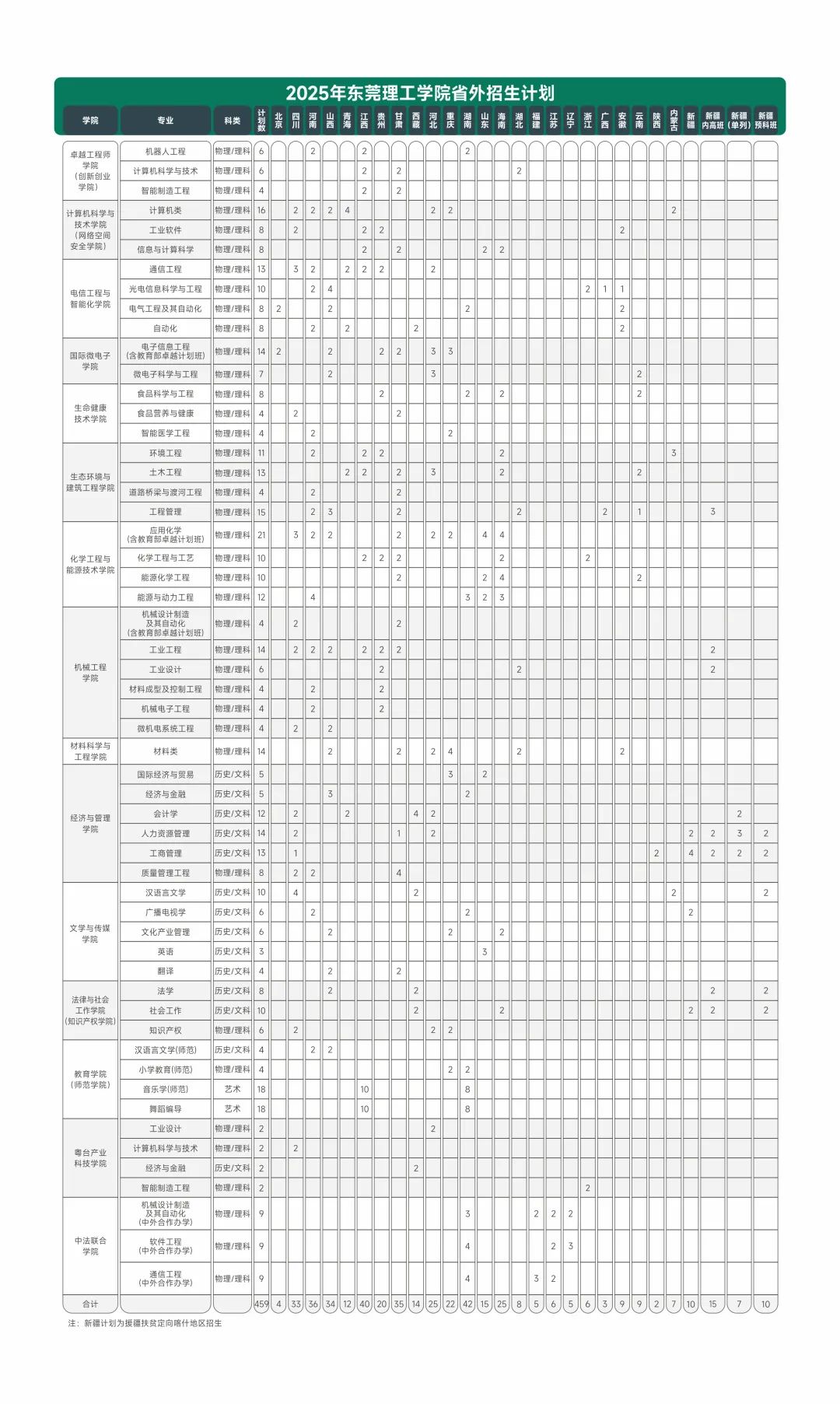 今年,莞工面向广东、北京、江西、海南、贵州、山东、四川、甘肃、河南、河北、重庆、山西、青海、湖南、湖北、广西、安徽、云南、新疆、福建、浙江、陕西、江苏、辽宁、内蒙古、西藏等26个省(自治区、直辖市)拟招生4973人,其中广东省内拟招生4514人,广东省外拟招生459人。
