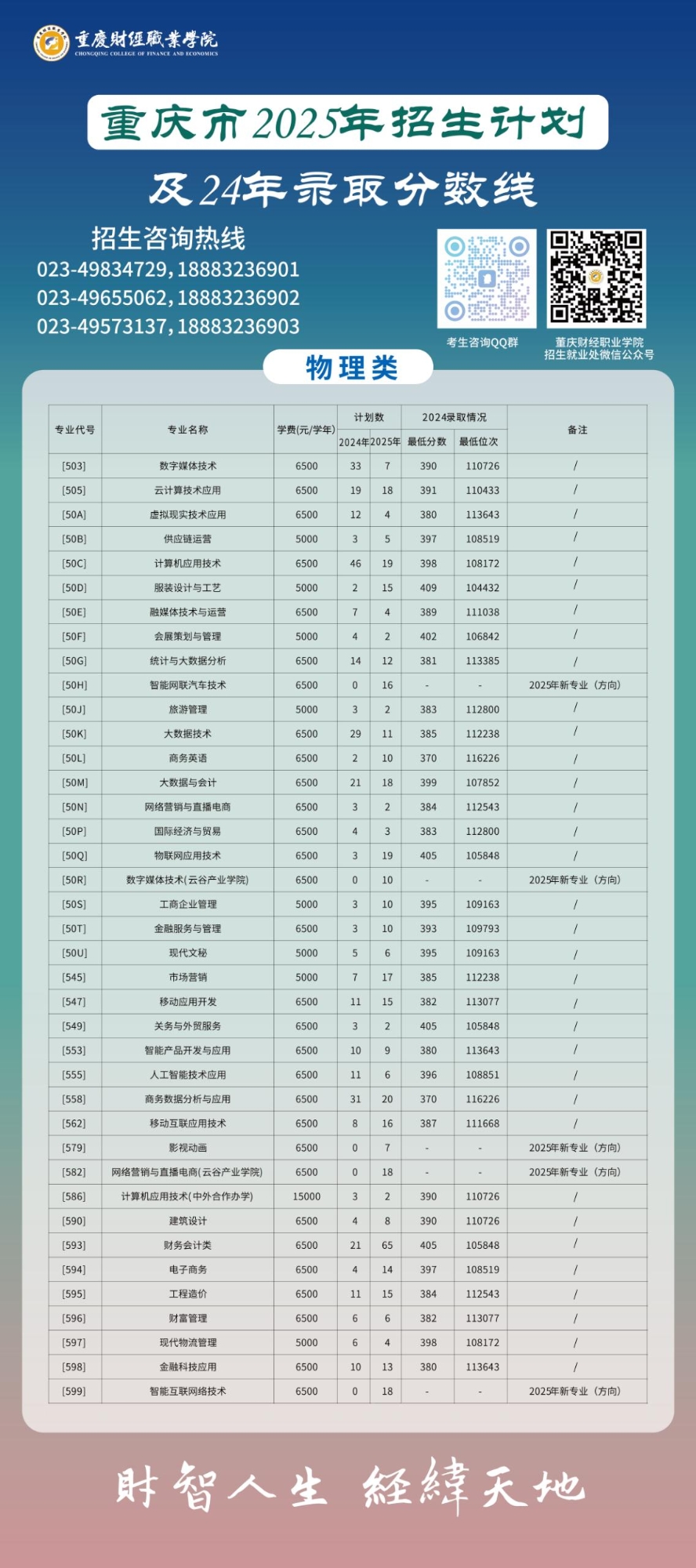 重庆市2025年物理类专业招生代码及24年录取分数线