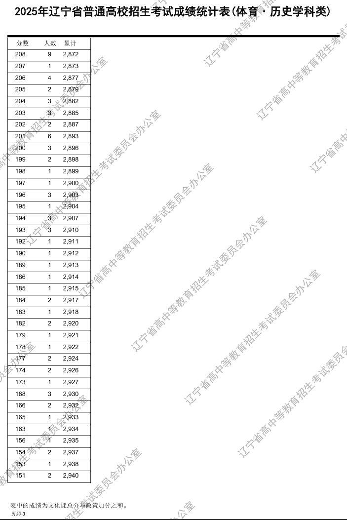 来源:辽宁招生考试之窗2025年辽宁省普通高校招生考试成绩统计表(体育﹒历史学科类)(点击链接查看)
