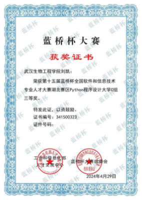 刘凯同学荣获第十五届蓝桥杯全国软件和