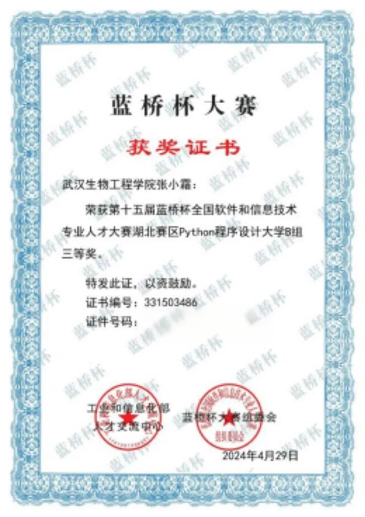 张小霜同学荣获第十五届蓝桥杯全国软件和