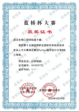 聂子豪同学荣获第十五届蓝桥杯全国软件和信息