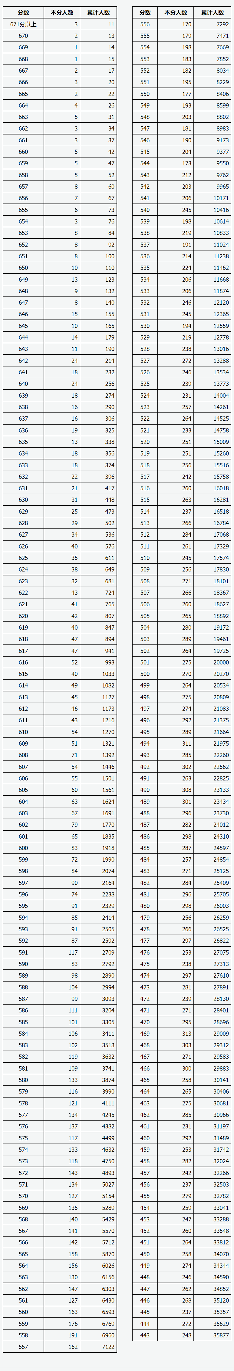 文章来源:山西省招生考试管理中心 山西省2025年普通高考成绩(历史科目组合)一分一段统计表