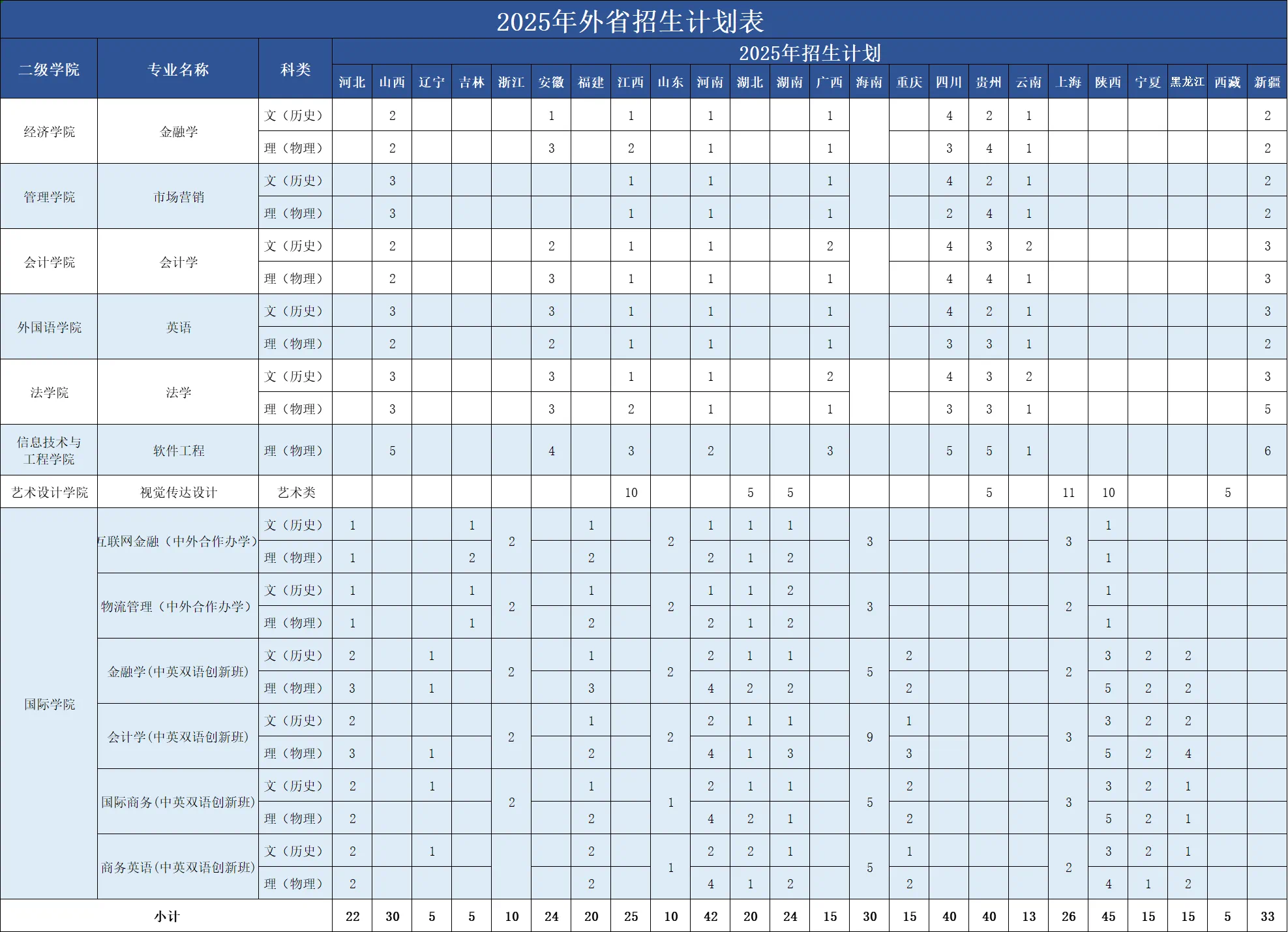 新增在四省进行招生