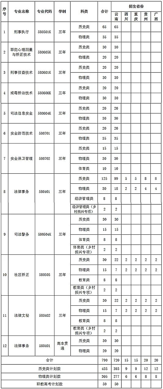 (一)司法行政警察专业:参加2025年普通高等学校招生全国统一考试的云南考生。