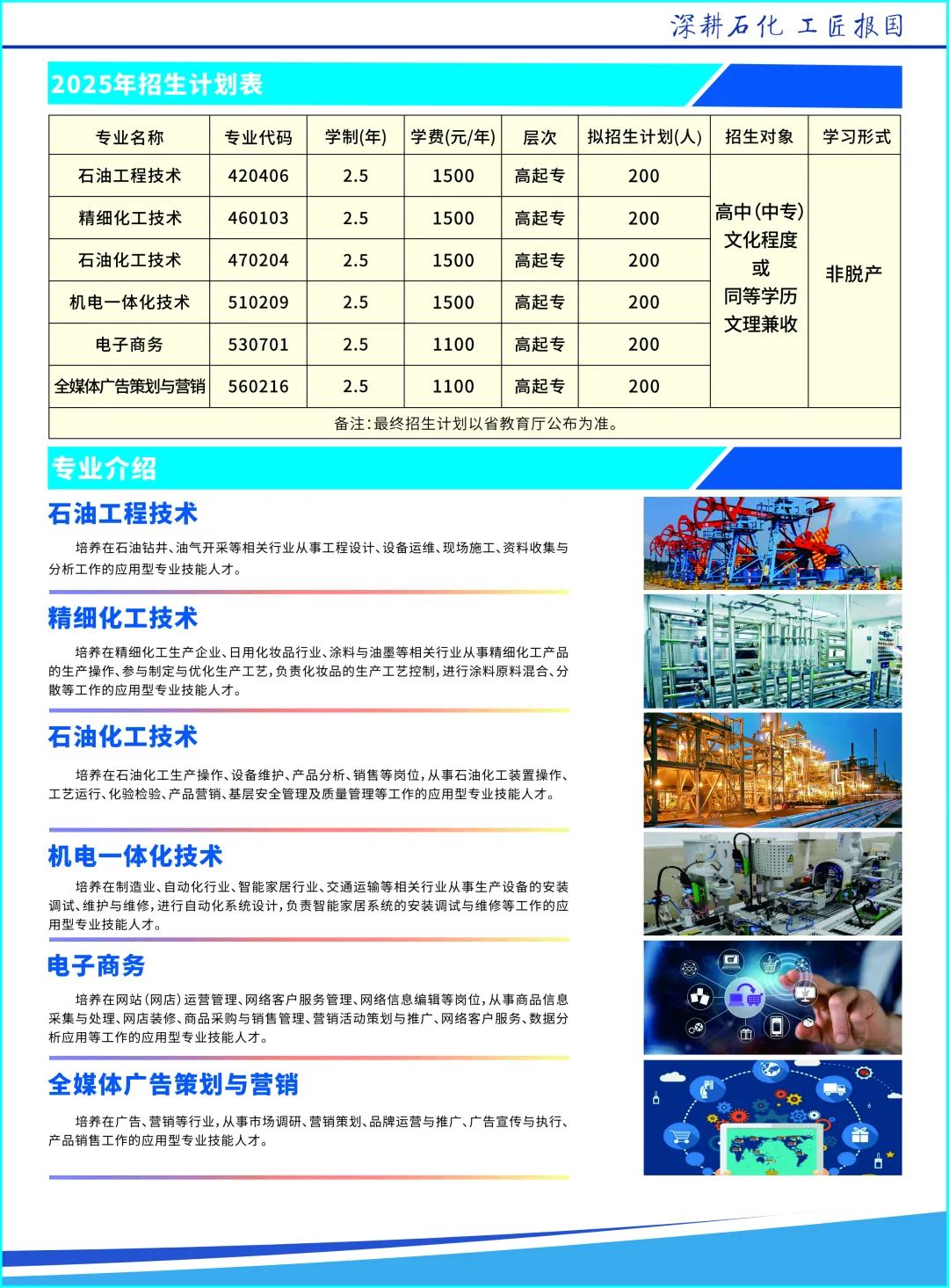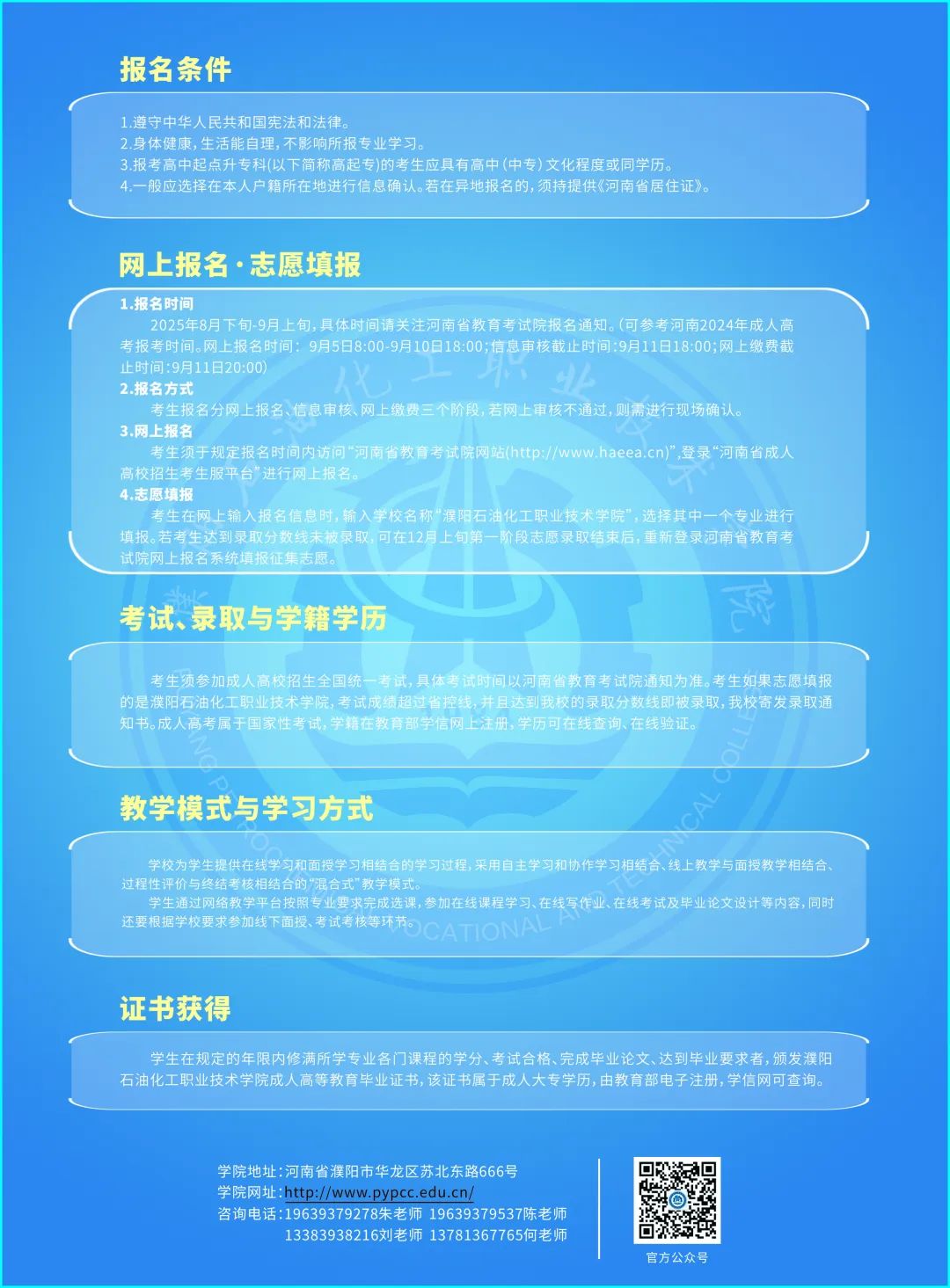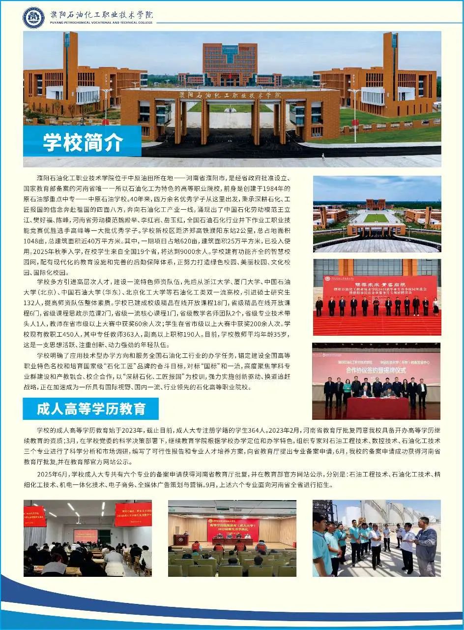 濮阳石油化工职业技术学院成人高等学历教育(高起专)2025年招生简章