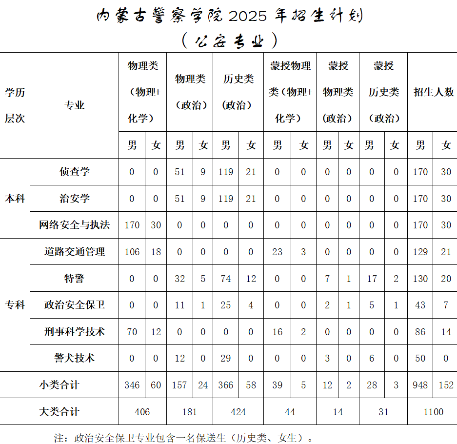 2025年计划招生1300人,其中公安专业1100人,非公安专业200人。公安专业女生招生计划数不超过公安专业招生计划总数的15%。