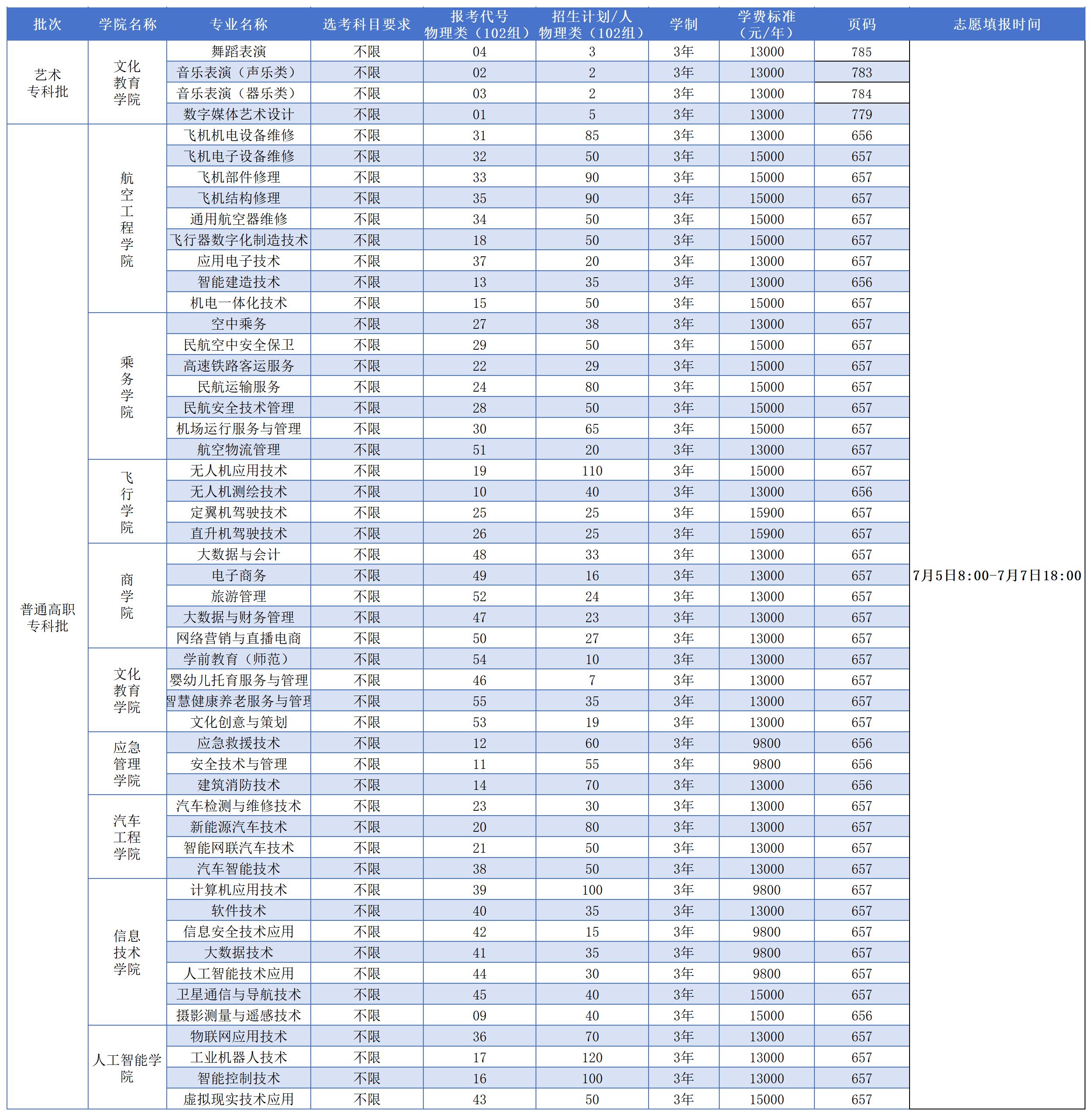 普通高职(专科)批、艺术高职(专科)批均于7月5日8:00—7日18:00进行志愿填报。