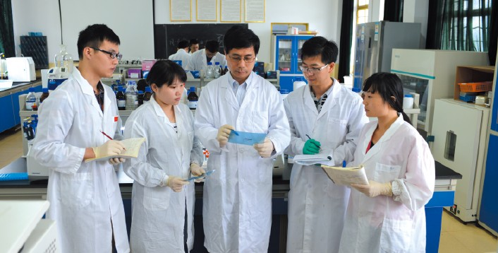 中国科学院和福建省“百人计划”专家、“闽江学者”陈吉龙教授(中)在指导学生实验