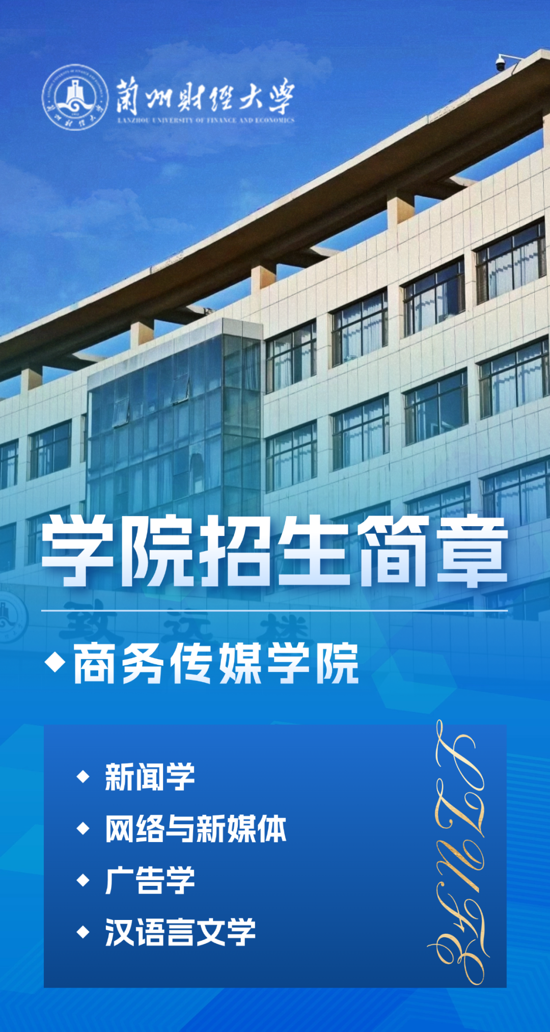 本科招生专业:广告学、新闻学、网络与新媒体、汉语言文学
