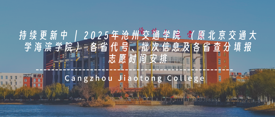 沧州交通学院(原北京交通大学海滨学院)在各省的代号、批次信息以及各省查分与填报志愿时间安排持续更新中,一起来看看吧。