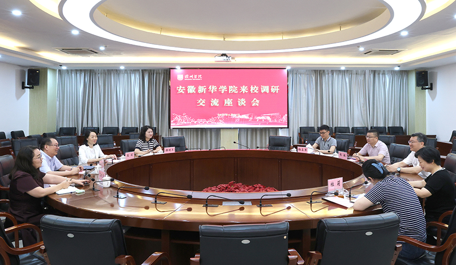 6月24日,安徽新华学院校长赵良庆、常务副校长王丽、副校长盛晓青一行来校调研师资队伍建设相关工作。党委书记周旭出席,党委副书记张敏主持座谈会,人事处负责同志参加座谈交流。